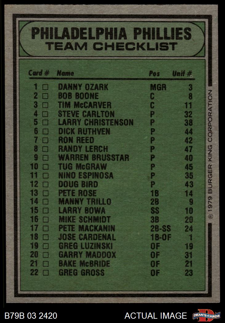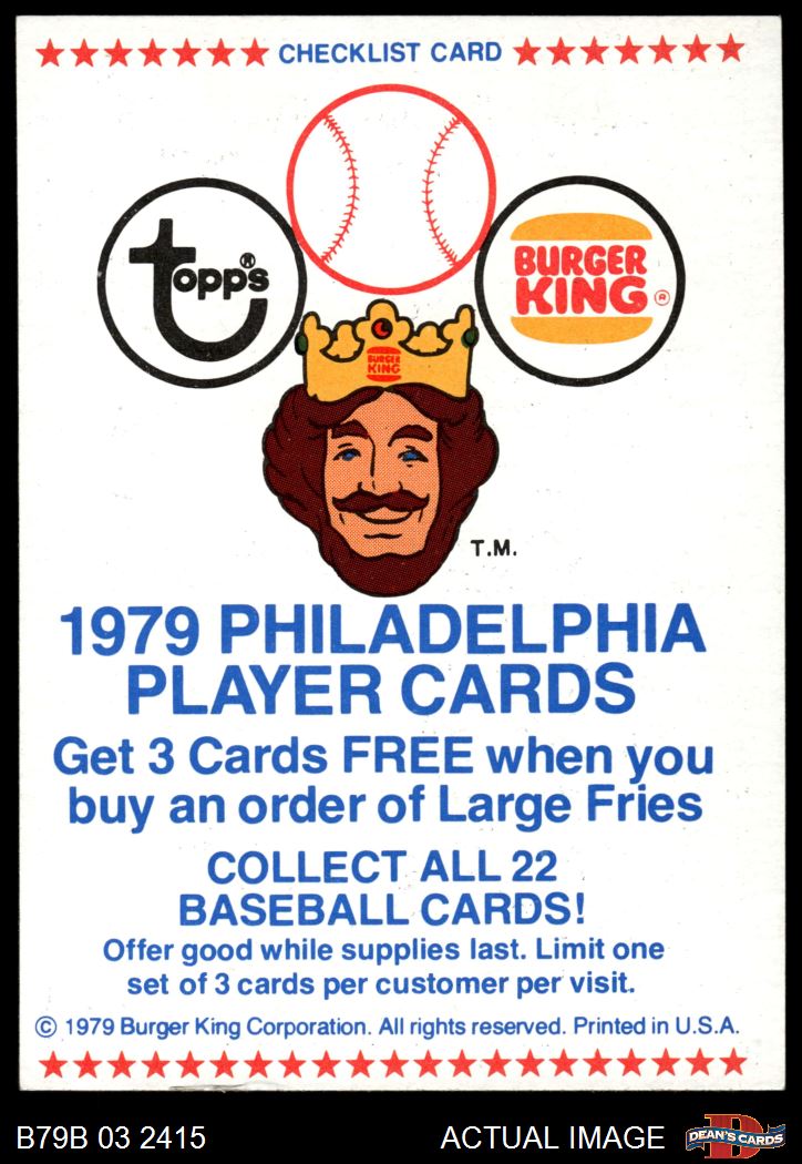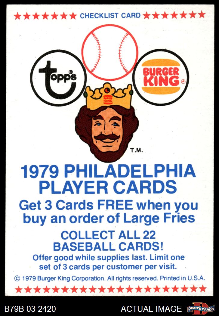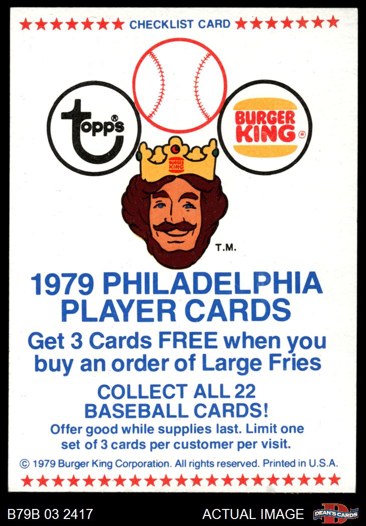 1979 Burger King Phillies Checklist 7 - NM