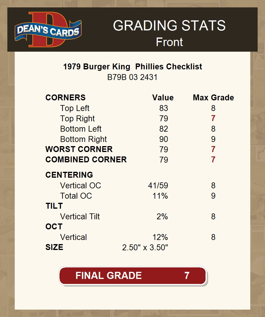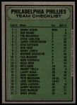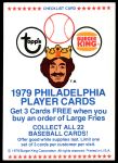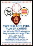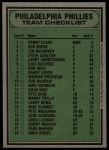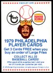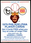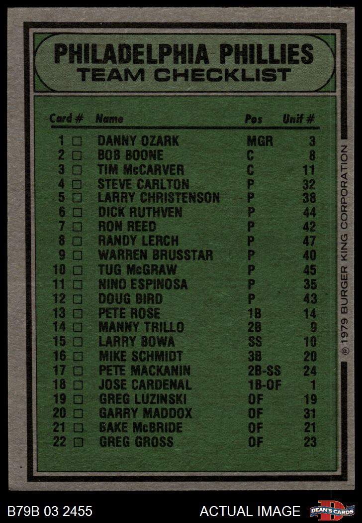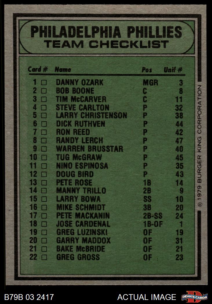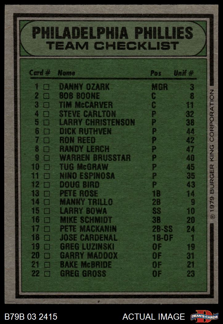 1979 Burger King Phillies Checklist 7 - NM