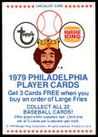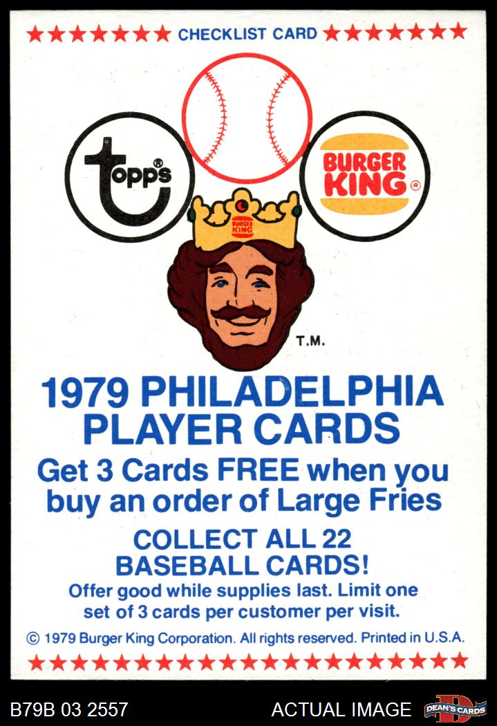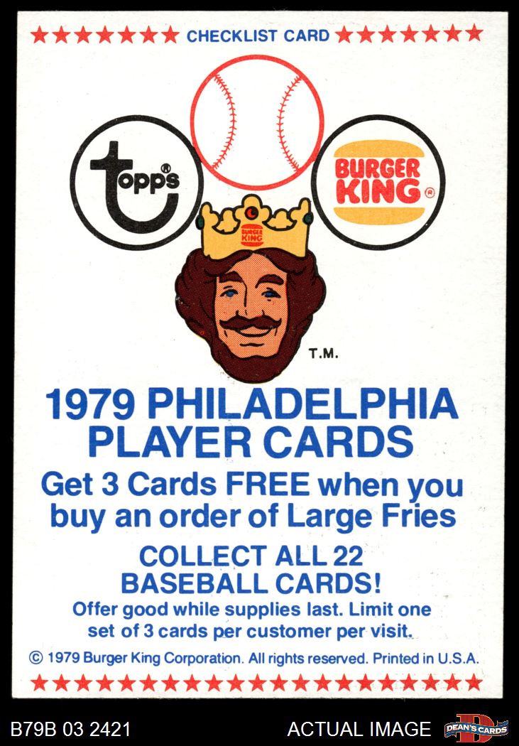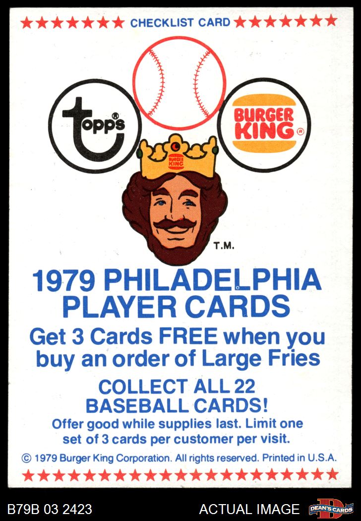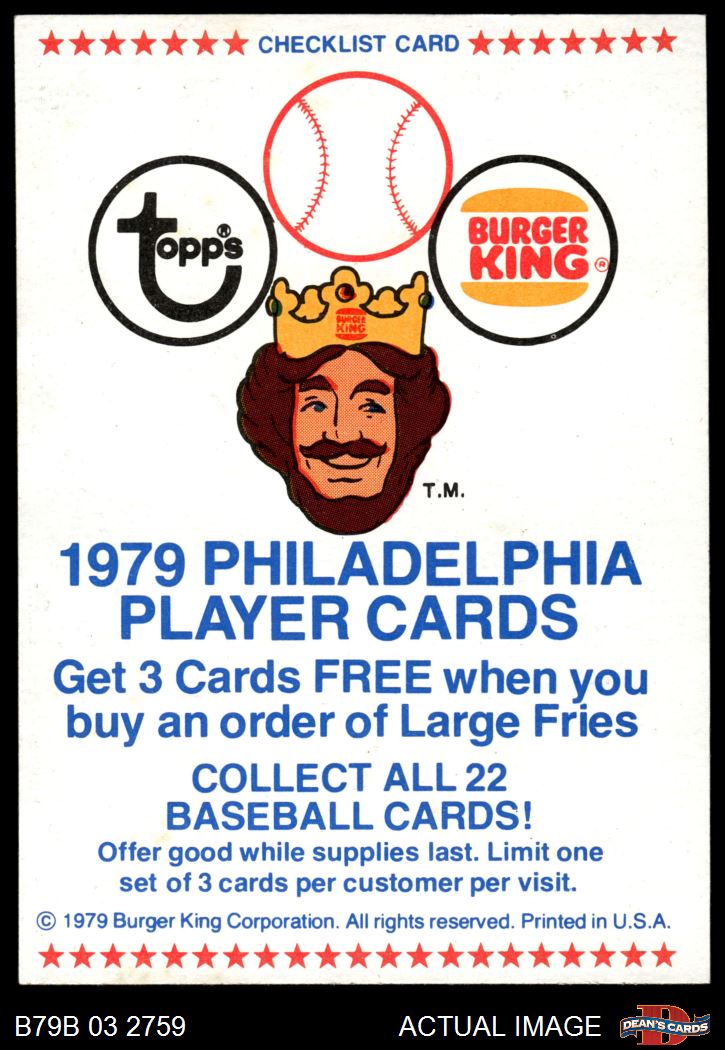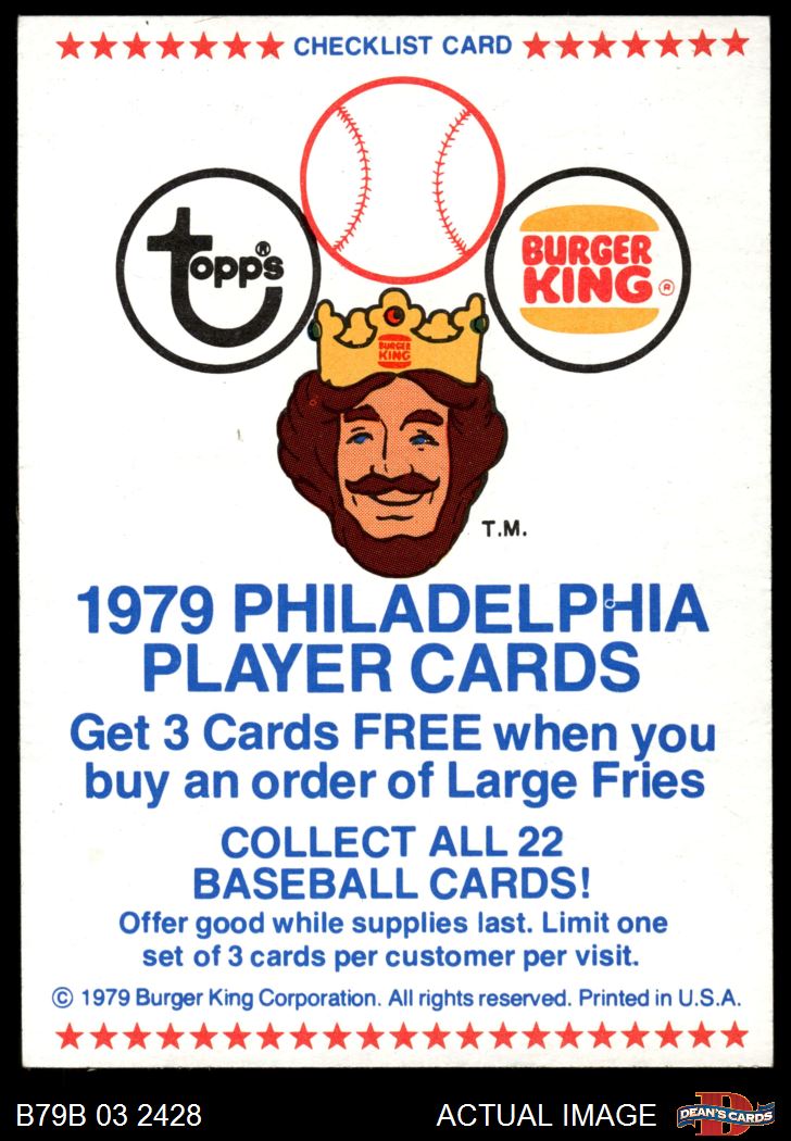 1979 Burger King Phillies Checklist 8 - NM/MT