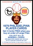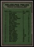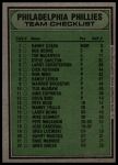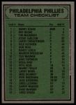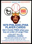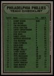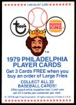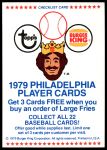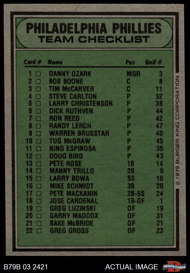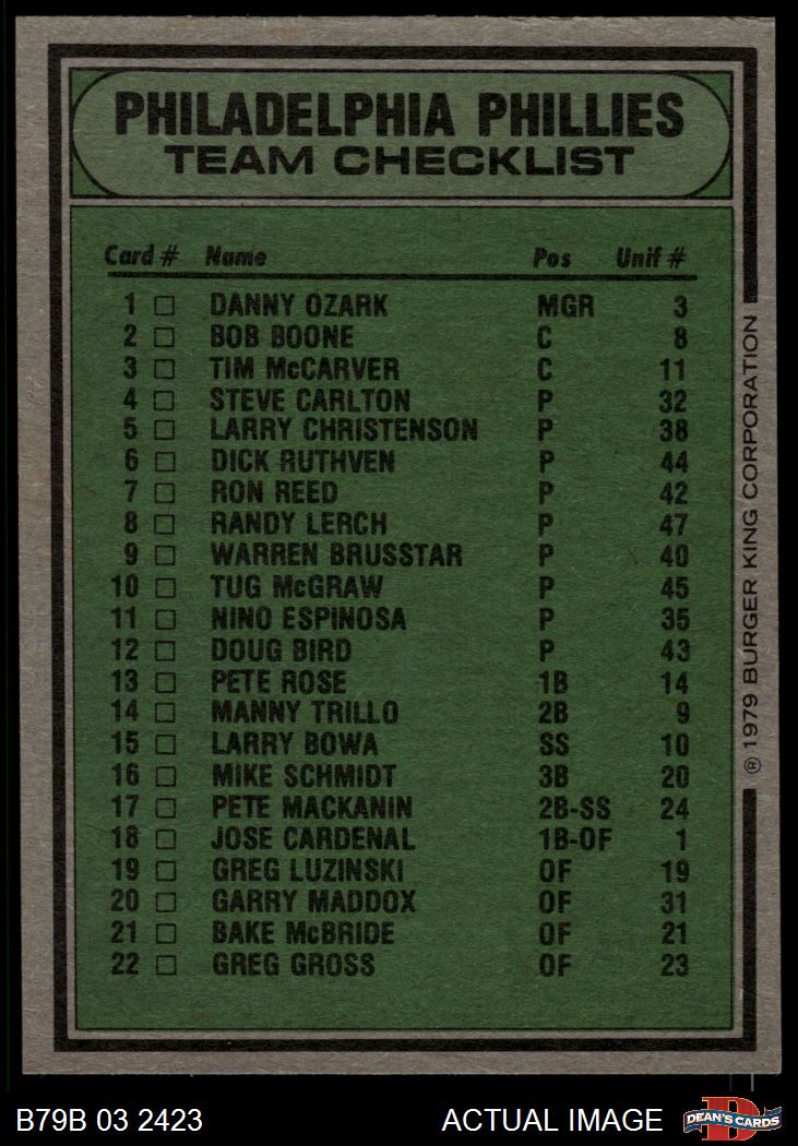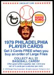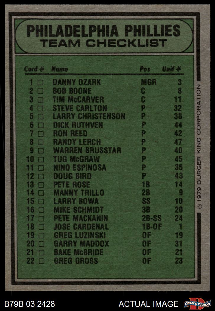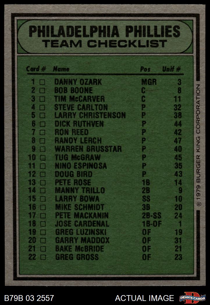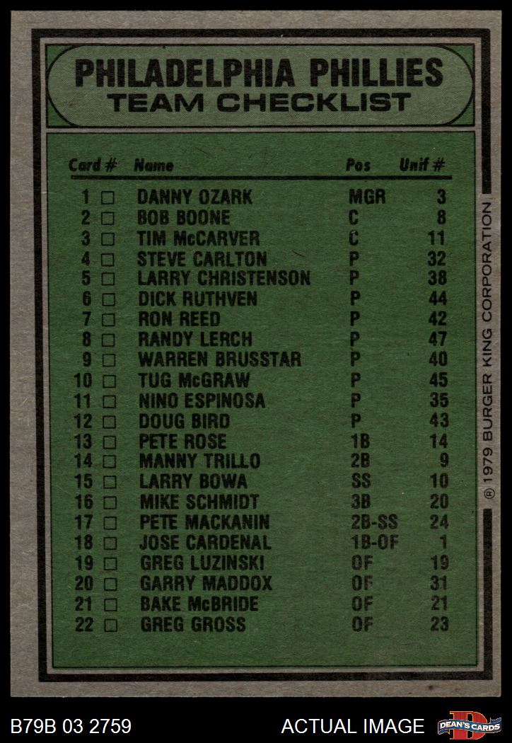 1979 Burger King Phillies Checklist 8 - NM/MT