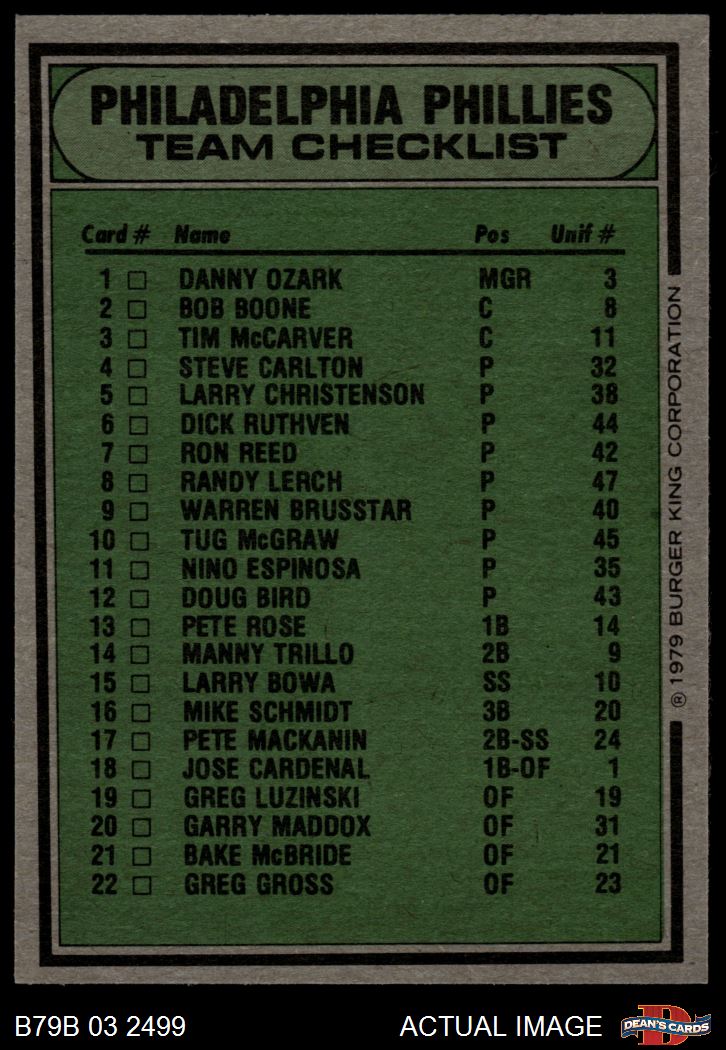 1979 Burger King Phillies Checklist 8.5 - NM/MT+
