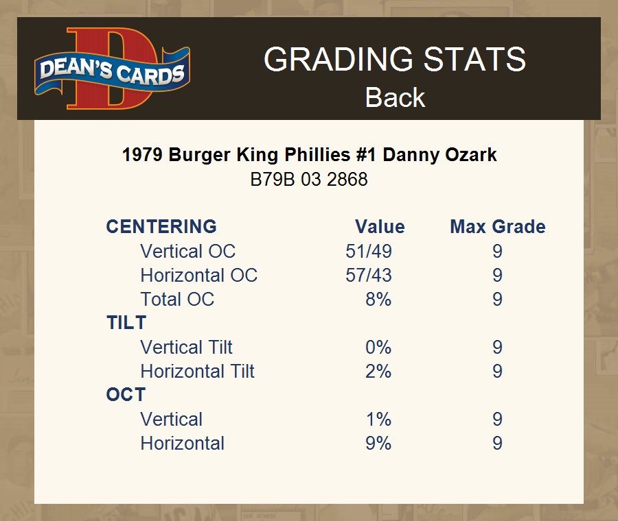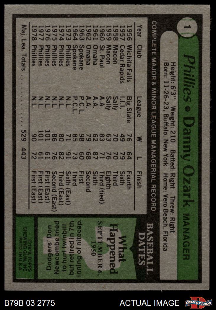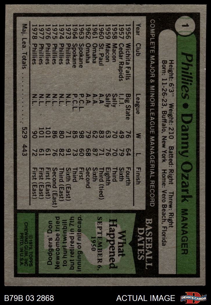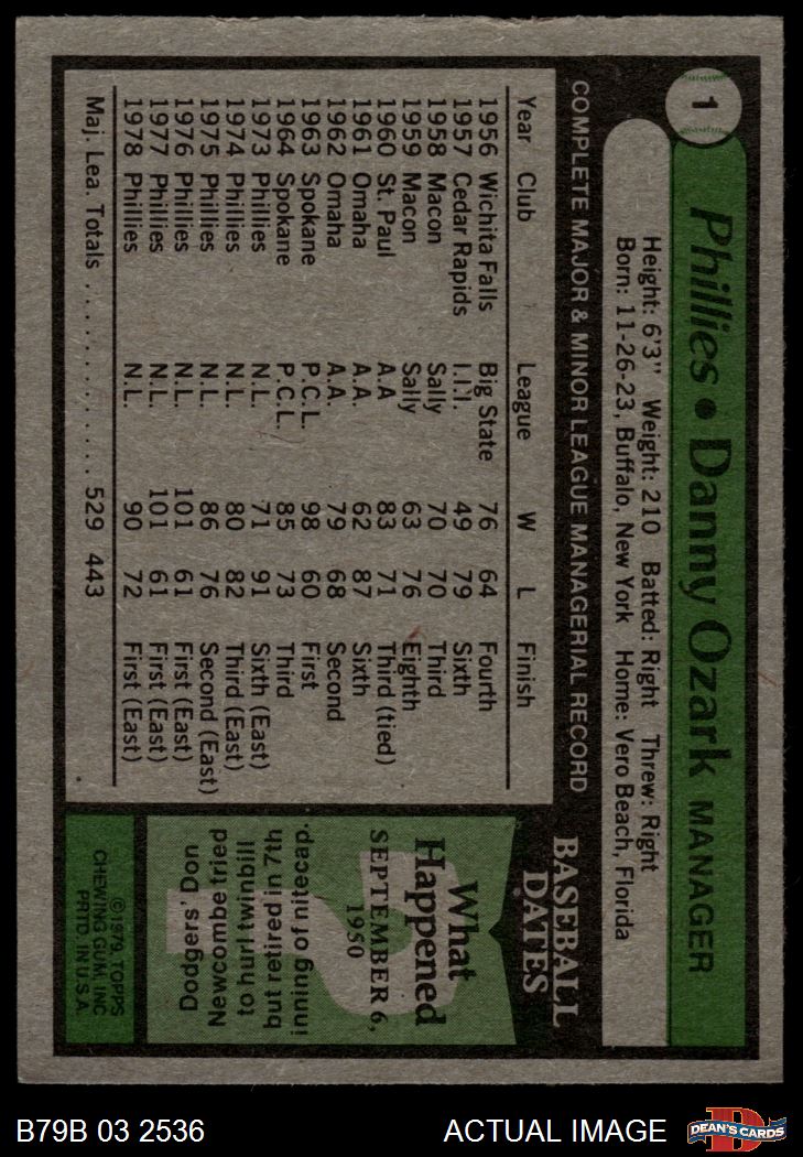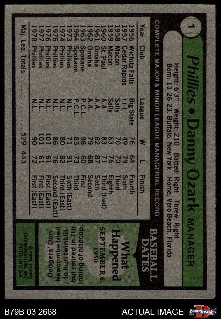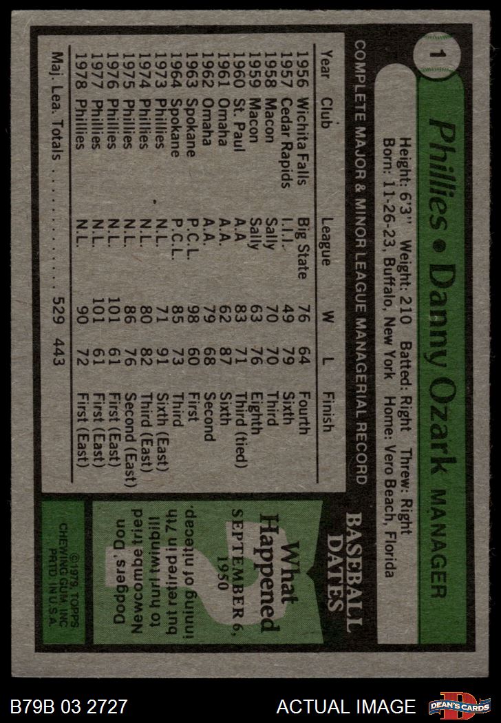 1979 Burger King Phillies #1 Danny Ozark 4 - VG/EX