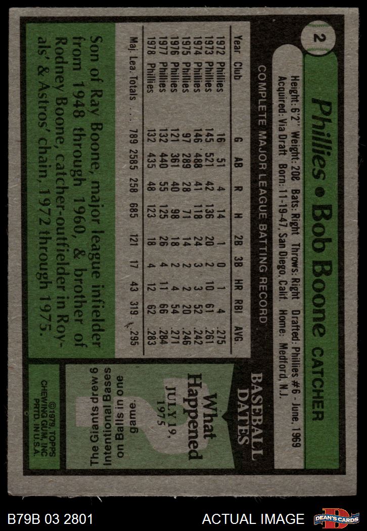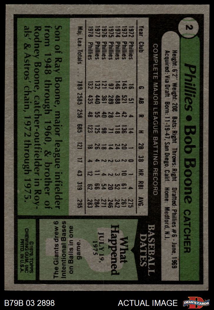 1979 Burger King Phillies #2 Bob Boone 2 - GOOD