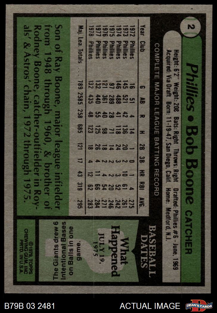 1979 Burger King Phillies #2 Bob Boone 5 - EX
