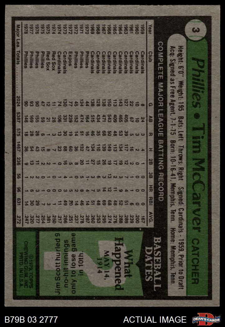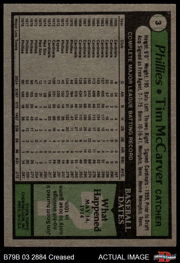 1979 Burger King Phillies #3 Tim McCarver 3 - VG