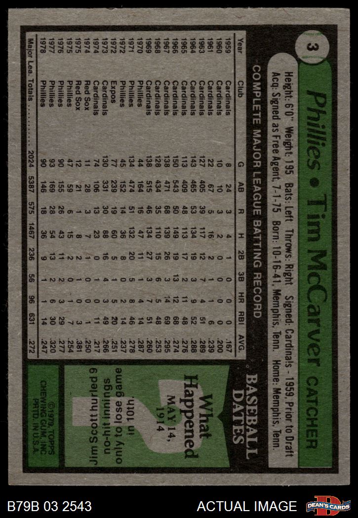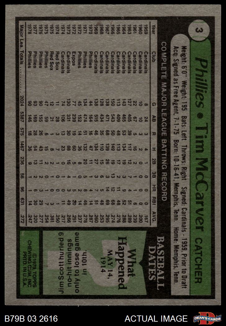 1979 Burger King Phillies #3 Tim McCarver 4 - VG/EX
