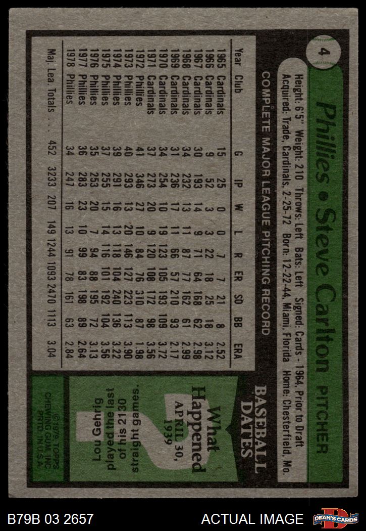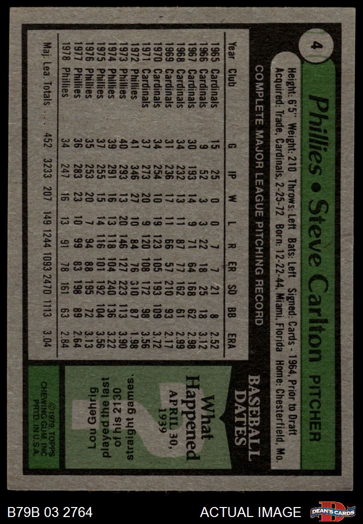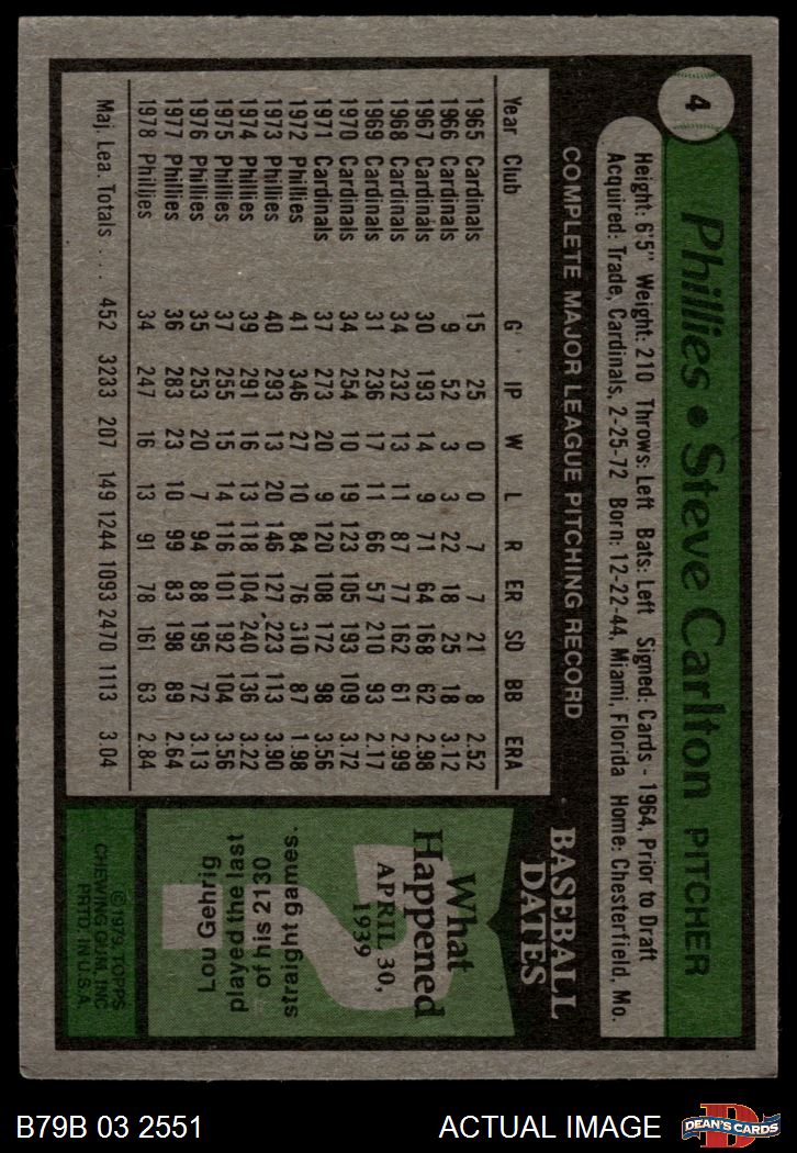 1979 Burger King Phillies #4 Steve Carlton 4 - VG/EX