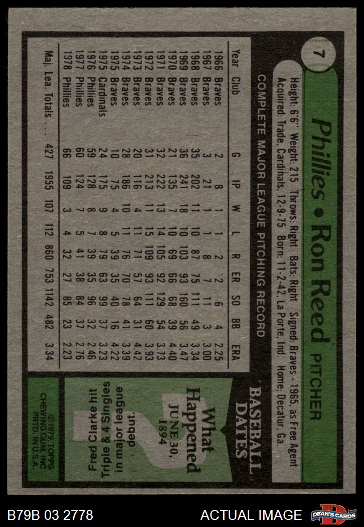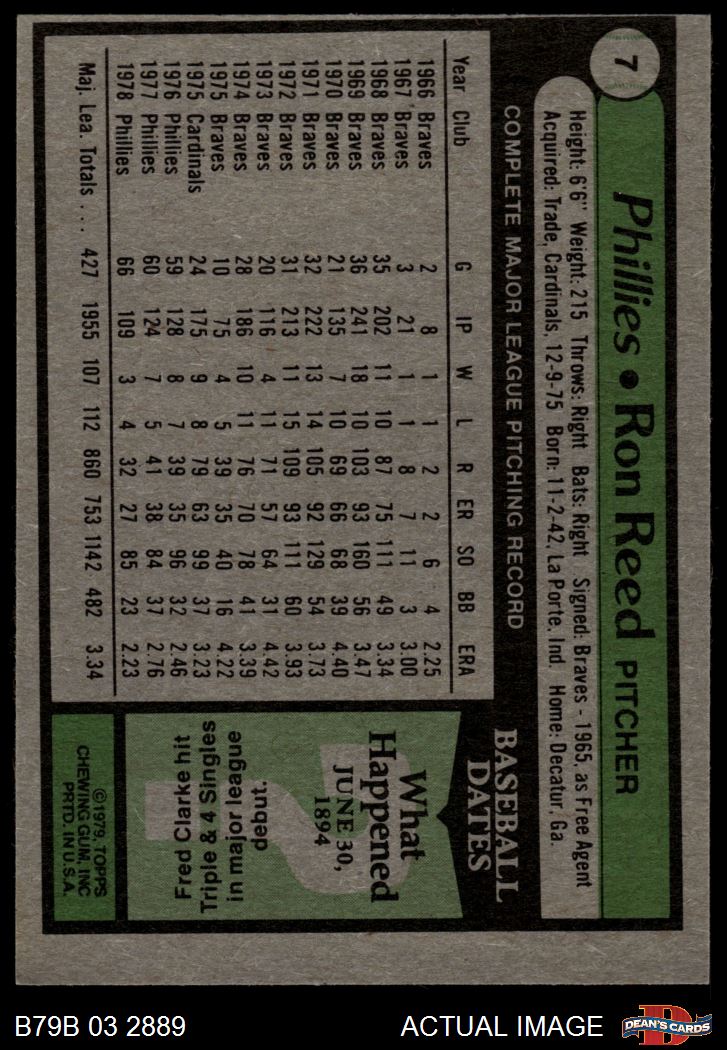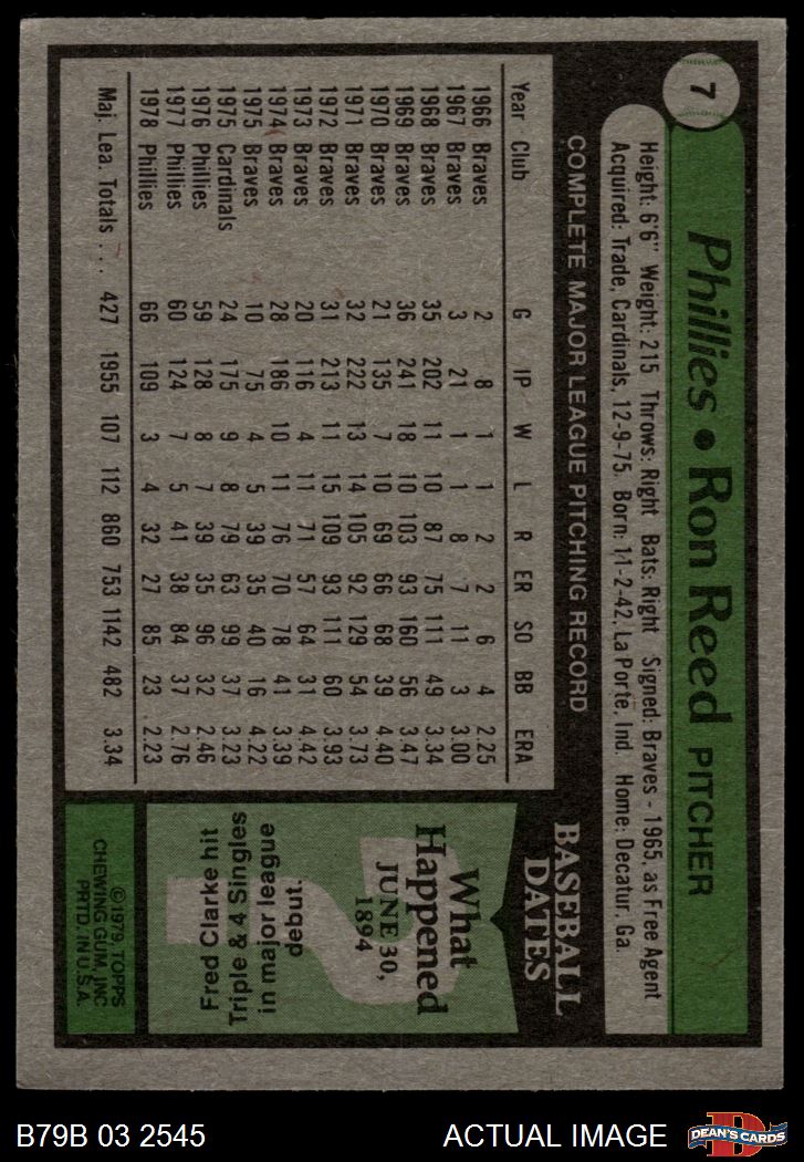 1979 Burger King Phillies #7 Ron Reed 3 - VG