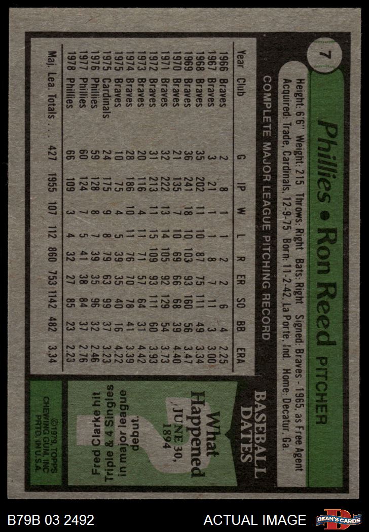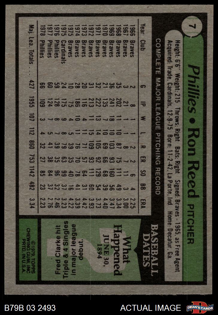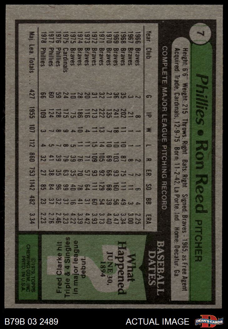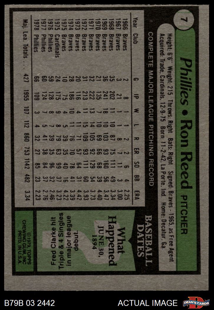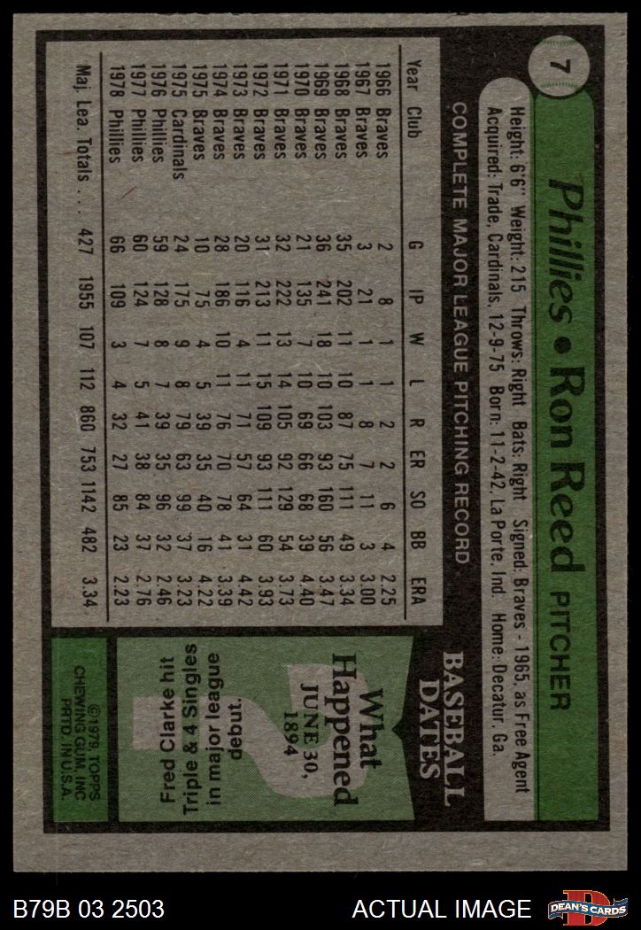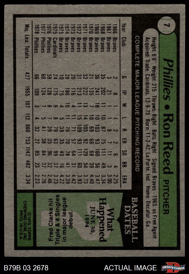 1979 Burger King Phillies #7 Ron Reed 4 - VG/EX