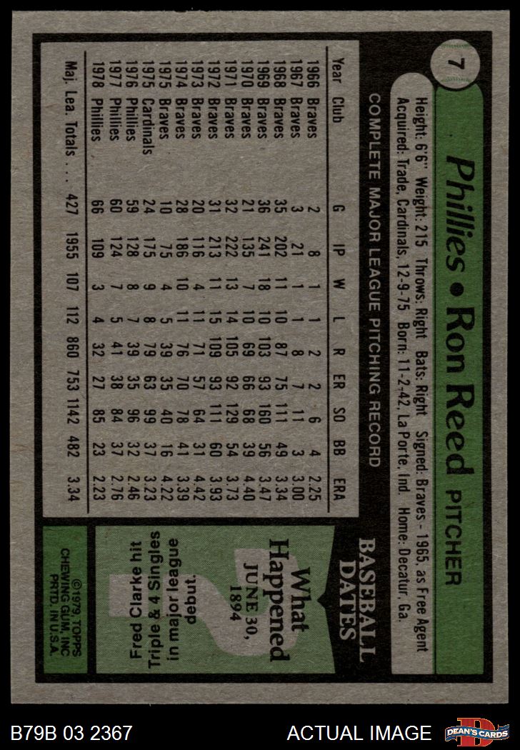 1979 Burger King Phillies #7 Ron Reed 6 - EX/MT