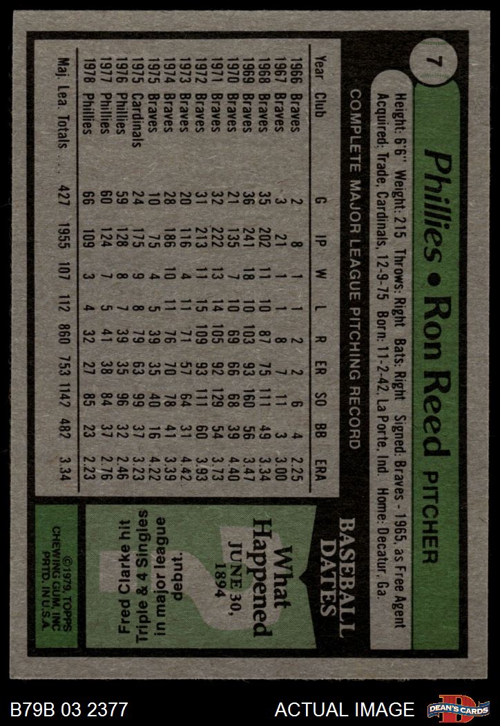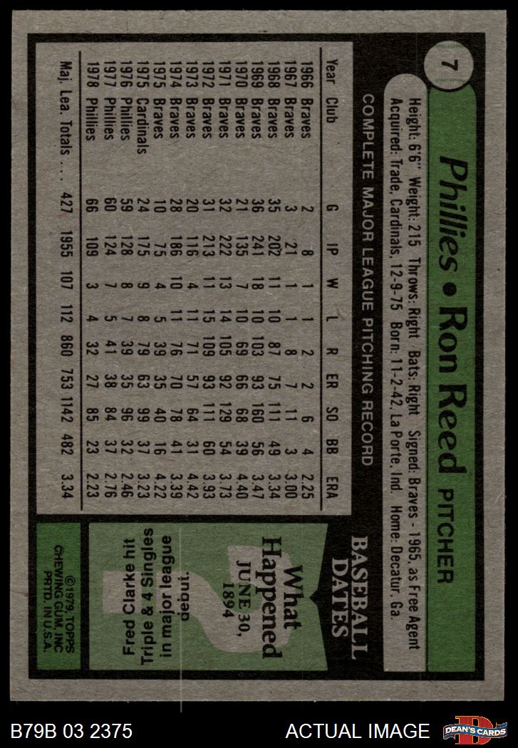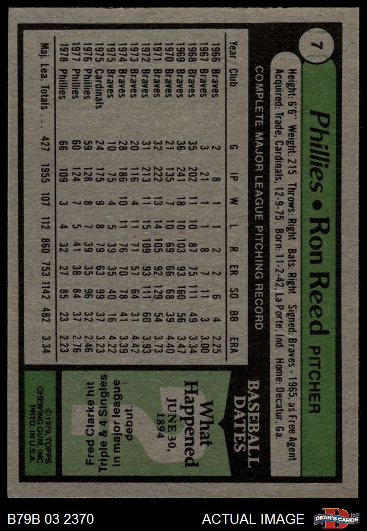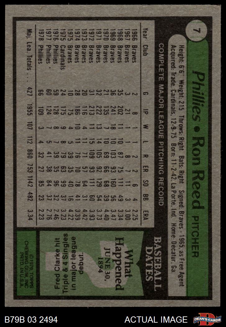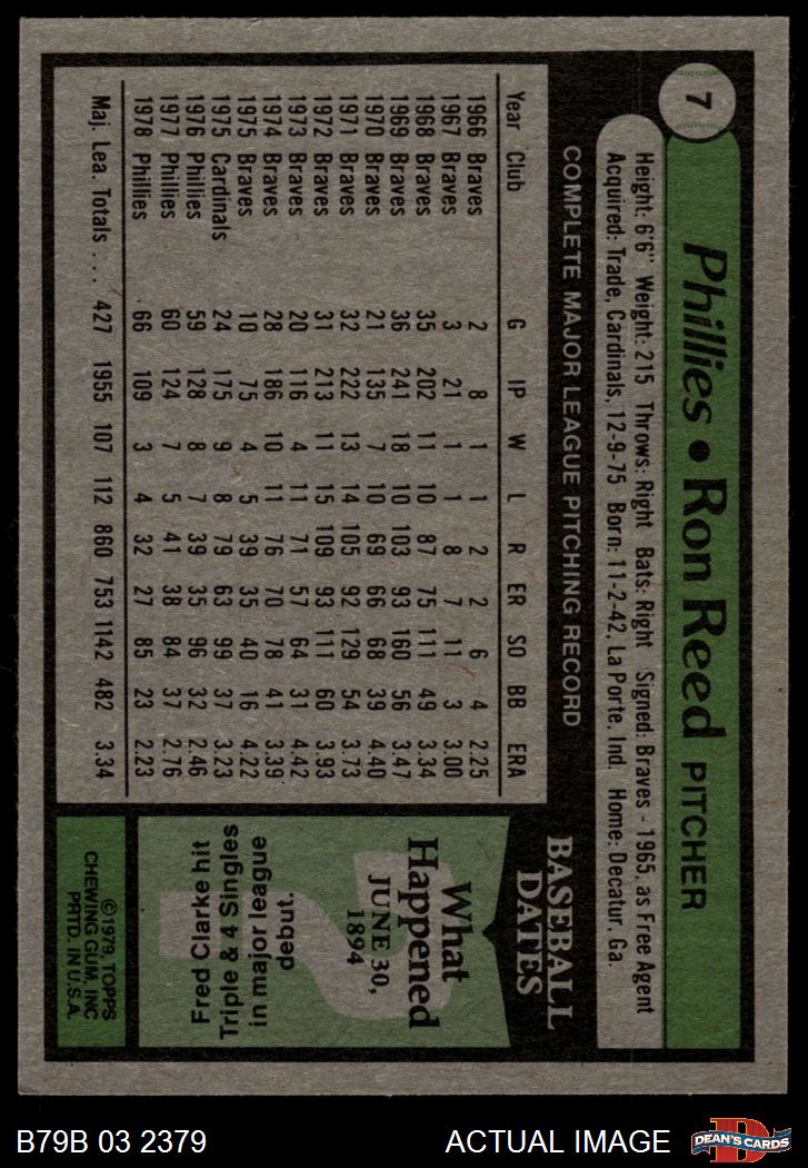 1979 Burger King Phillies #7 Ron Reed 8 - NM/MT