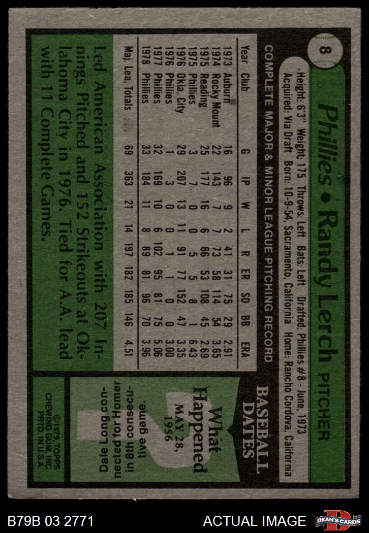 1979 Burger King Phillies #8 Randy Lerch 3 - VG