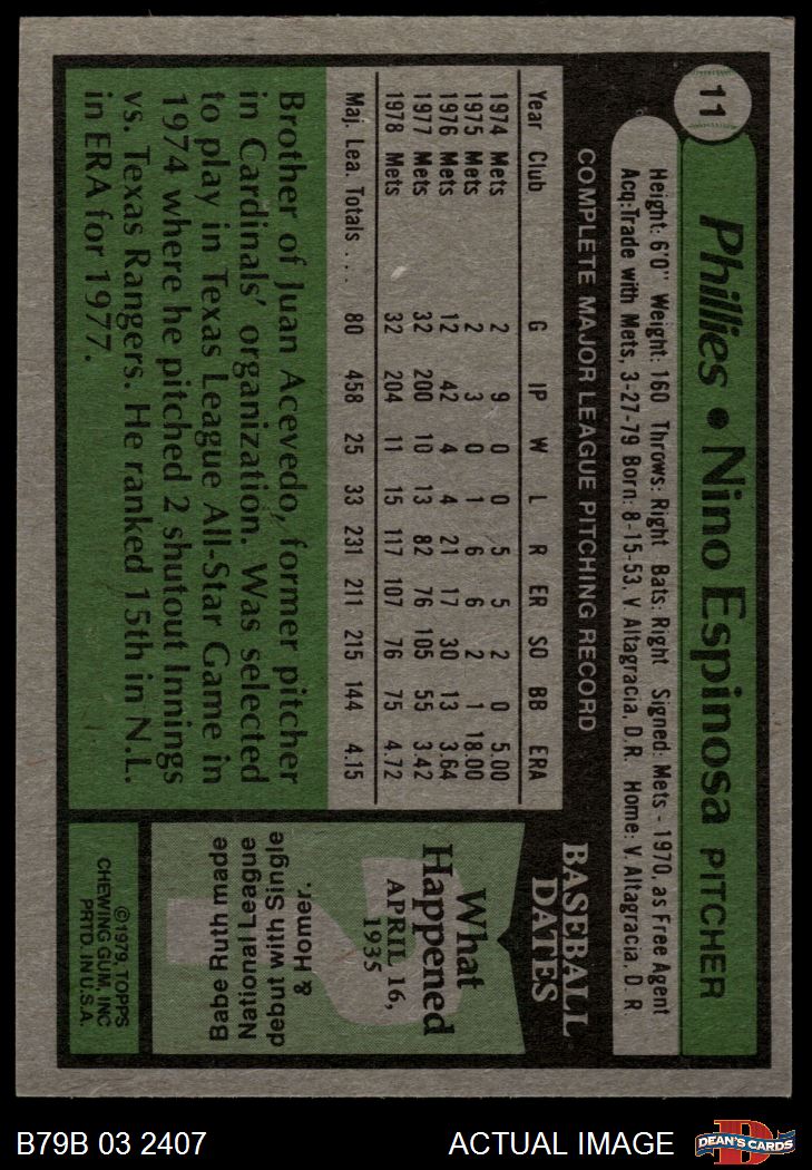 1979 Burger King Phillies #11 Nino Espinosa 7 - NM