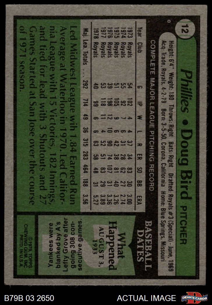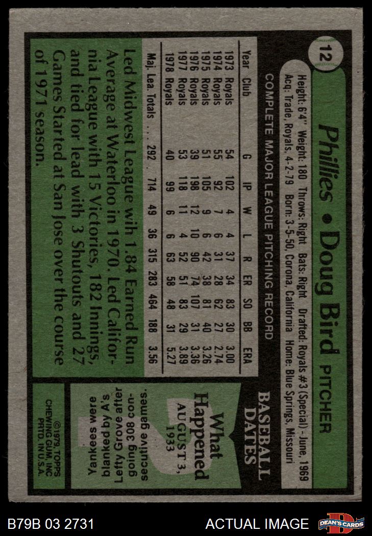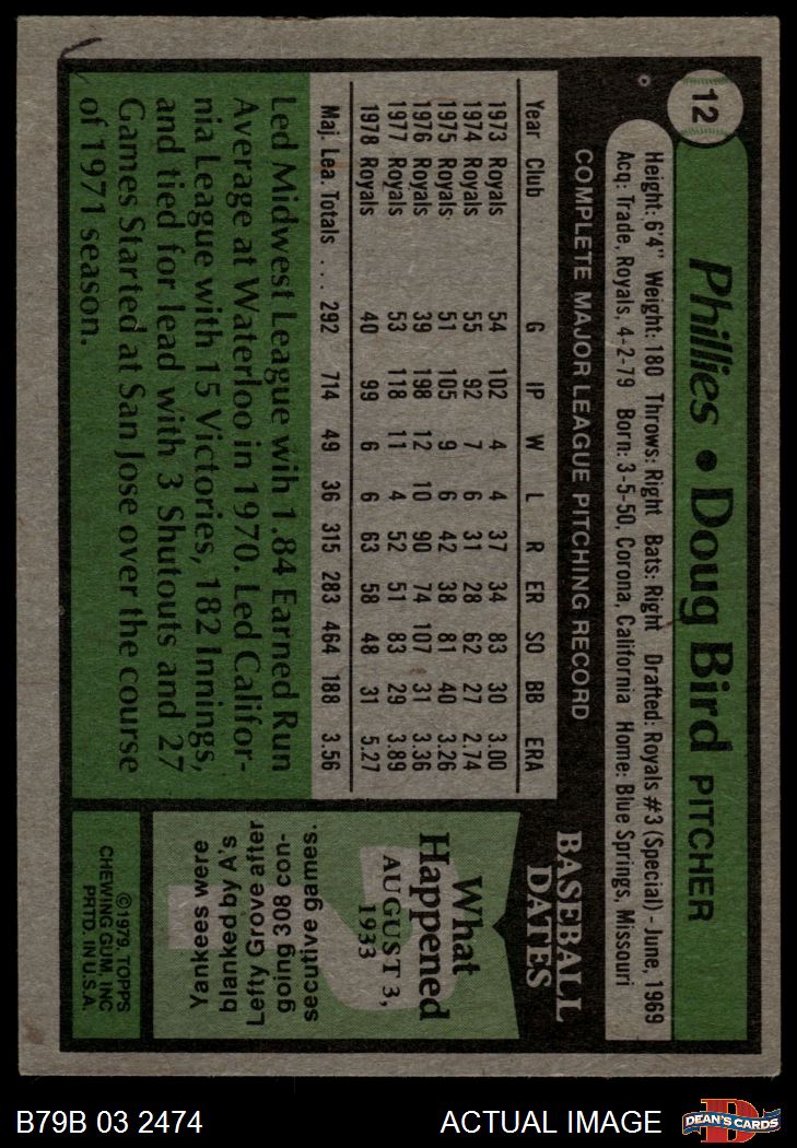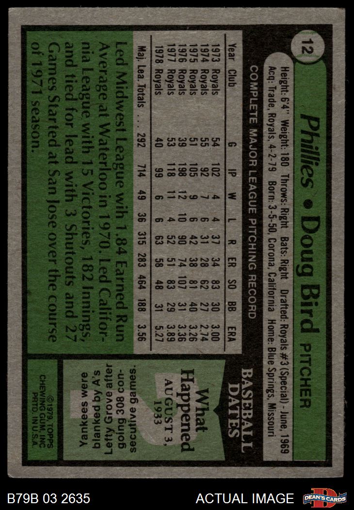 1979 Burger King Phillies #12 Doug Bird 3 - VG