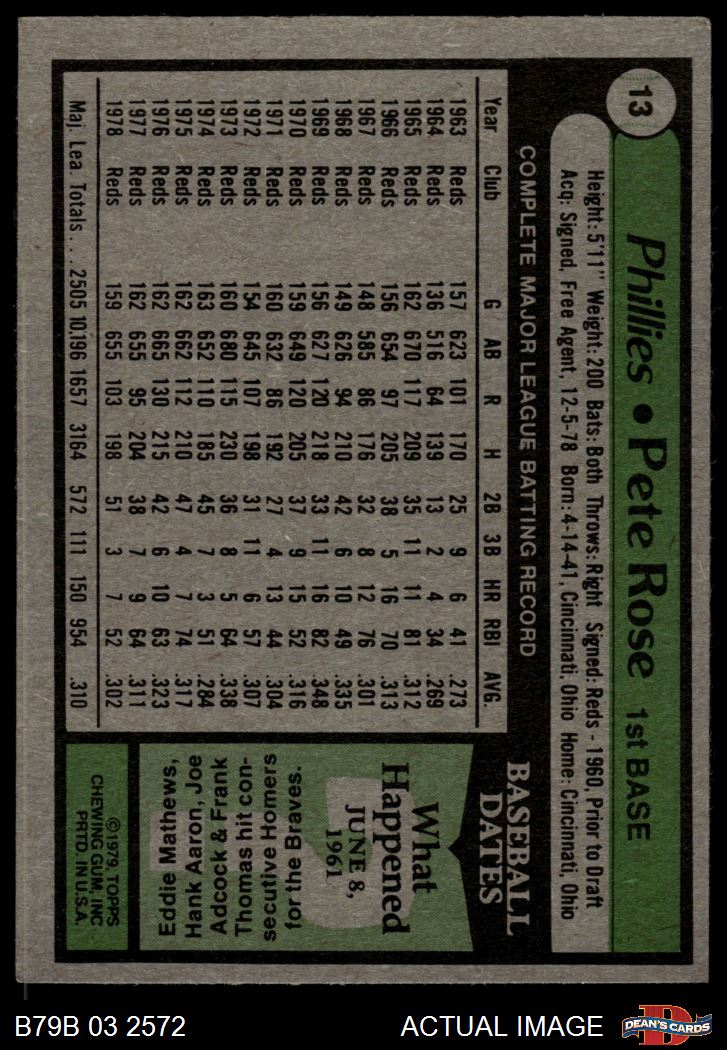 1979 Burger King Phillies #13 Pete Rose 4 - VG/EX