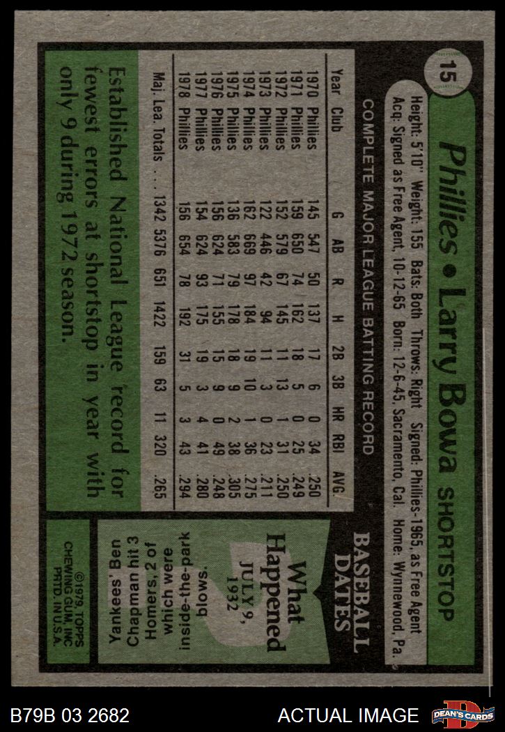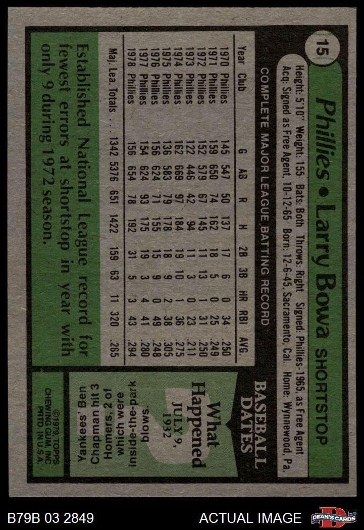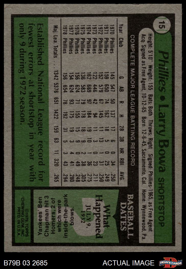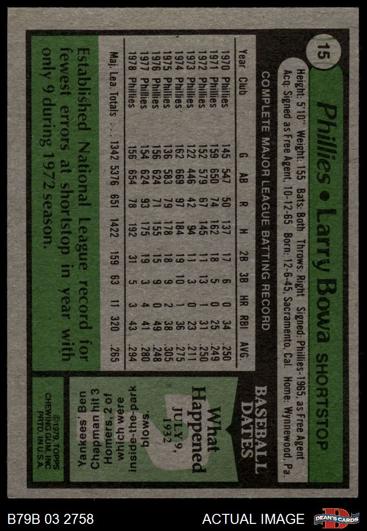 1979 Burger King Phillies #15 Larry Bowa 4 - VG/EX