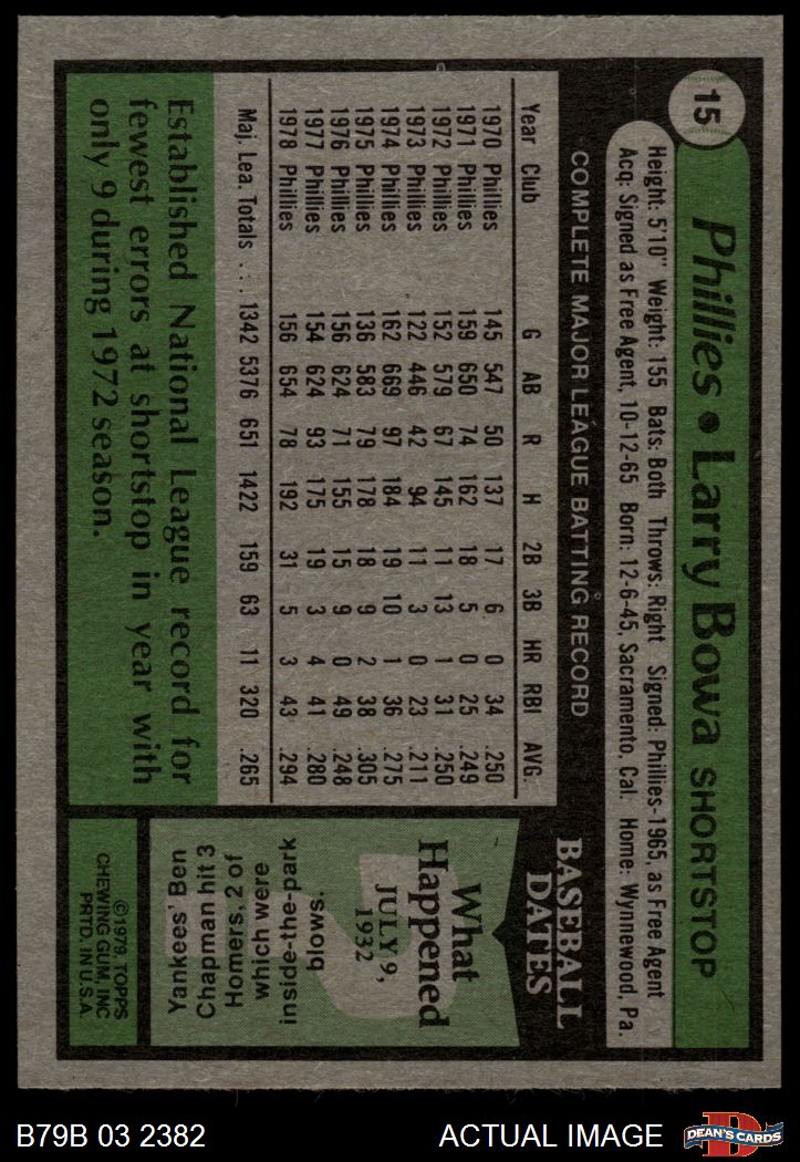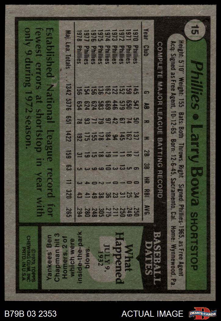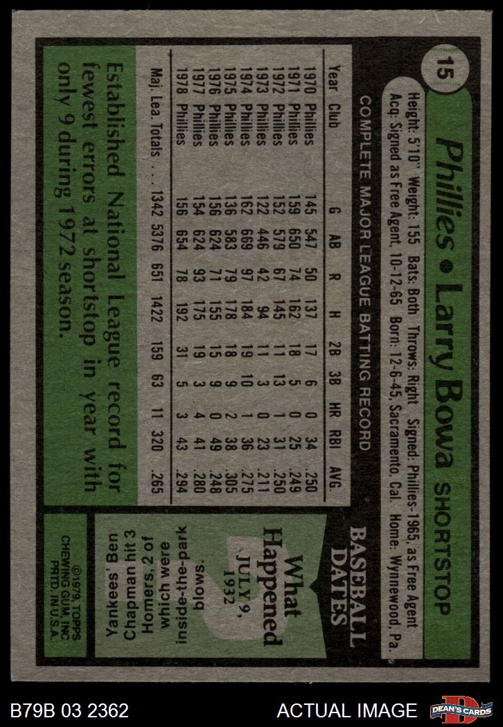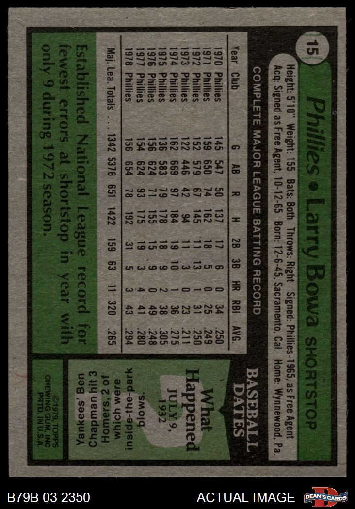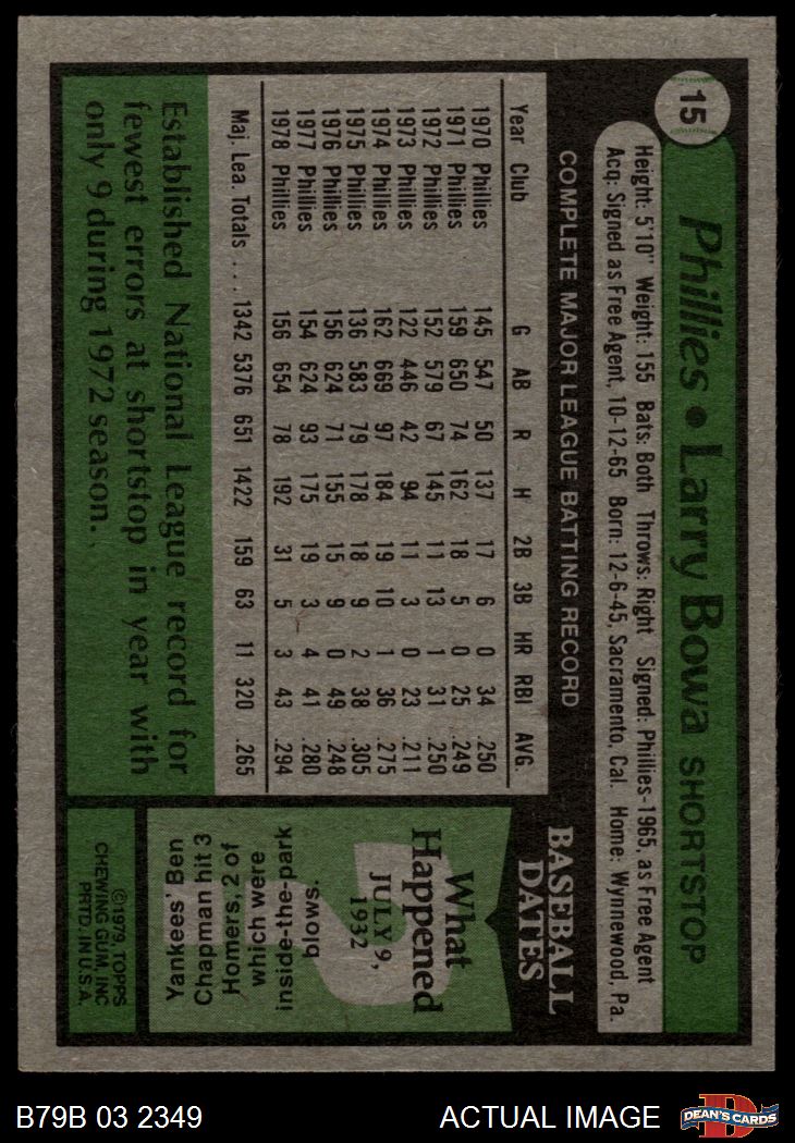 1979 Burger King Phillies #15 Larry Bowa 6 - EX/MT
