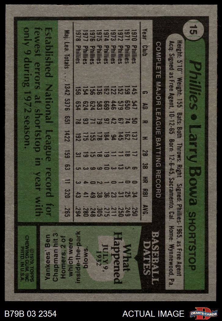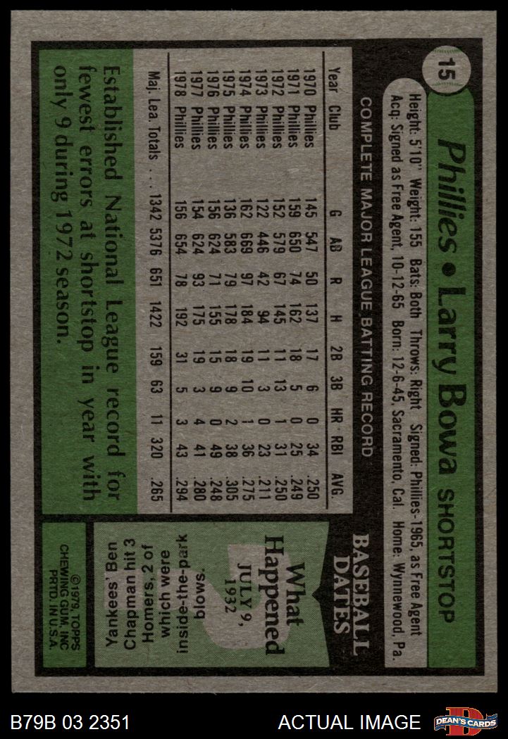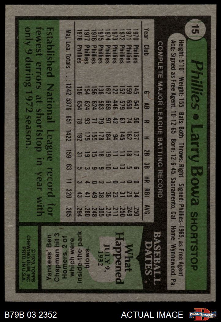 1979 Burger King Phillies #15 Larry Bowa 7 - NM