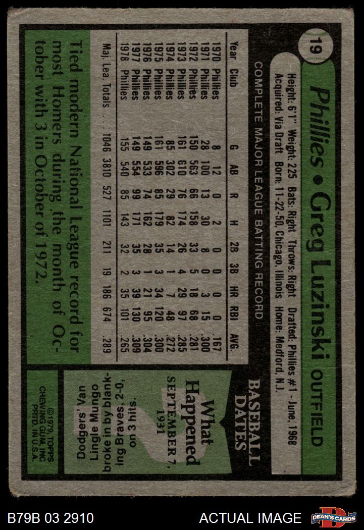 1979 Burger King Phillies #19 Greg Luzinski 1 - POOR
