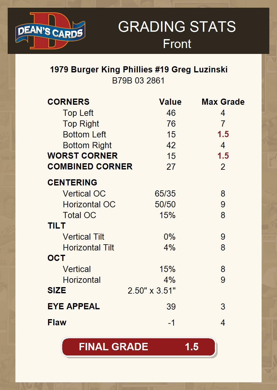 1979 Burger King Phillies #19 Greg Luzinski 1.5 - FAIR