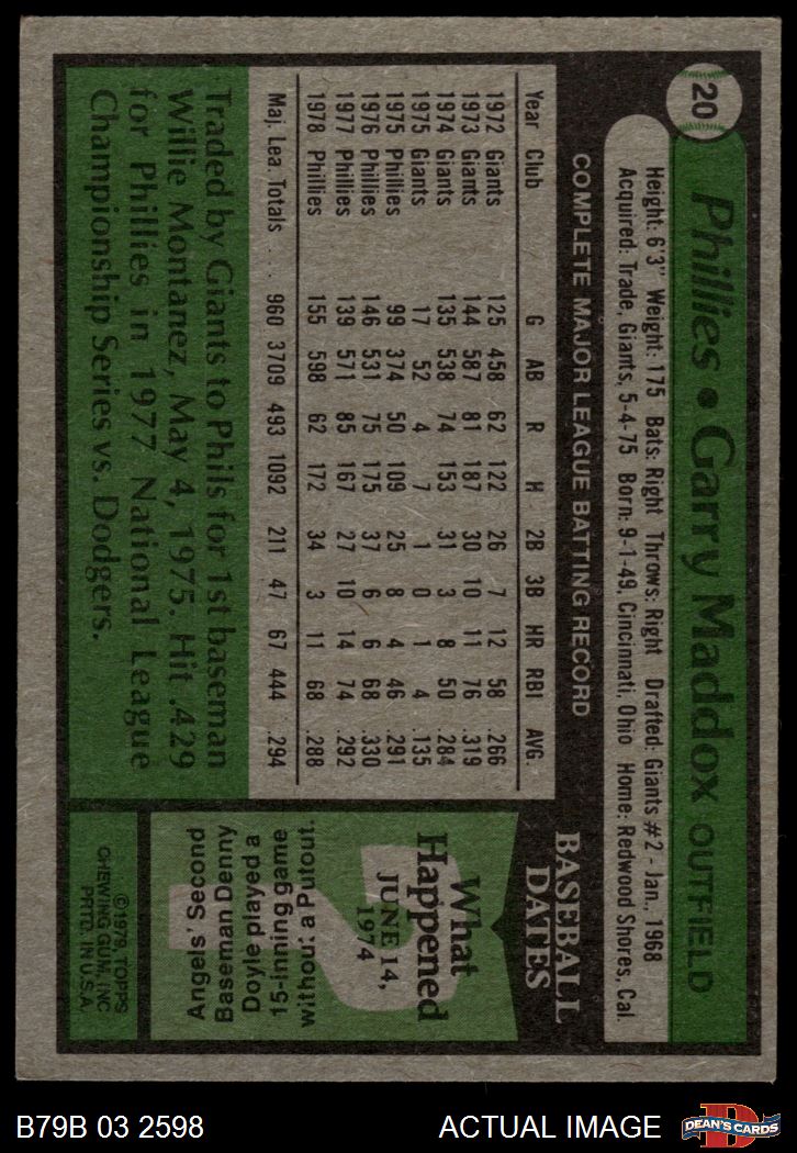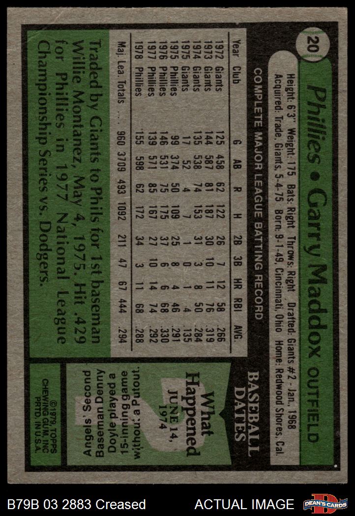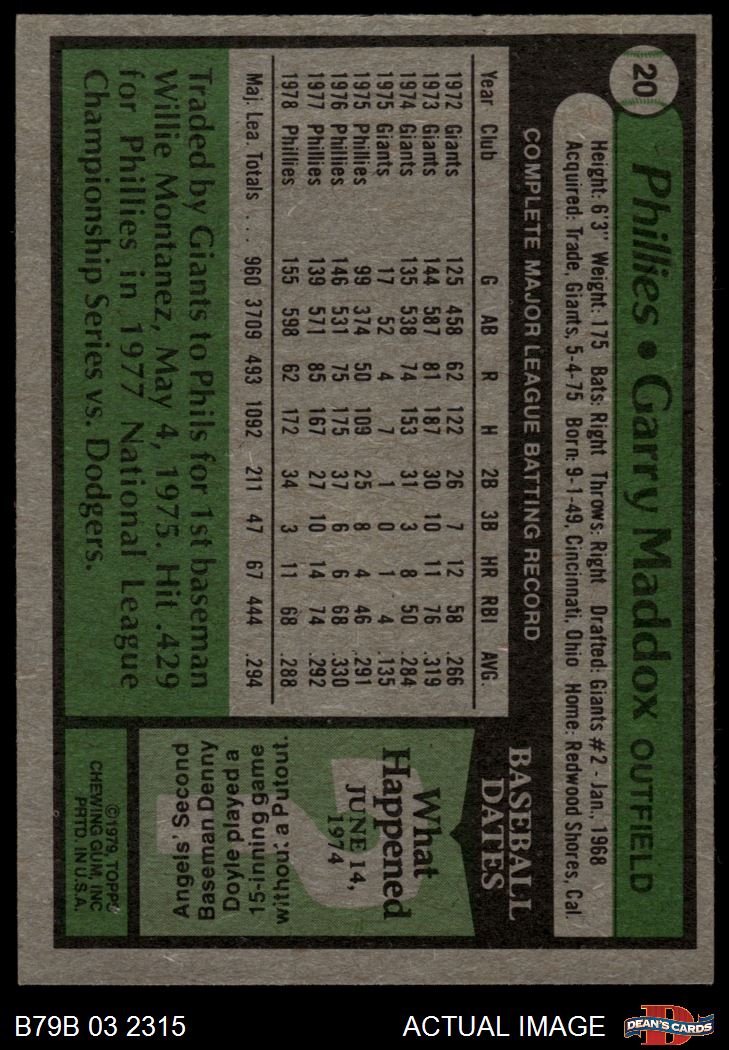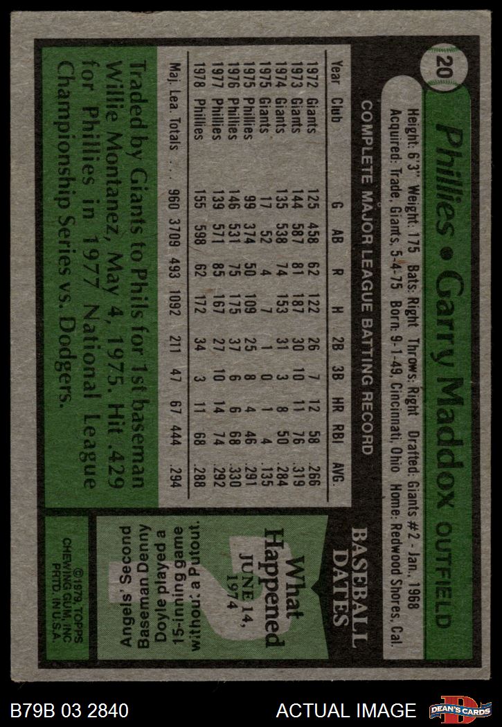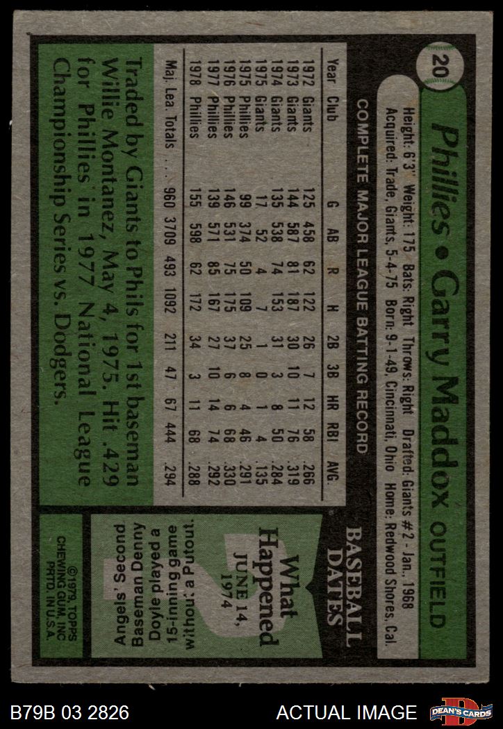 1979 Burger King Phillies #20 Garry Maddox 3 - VG