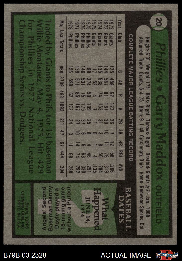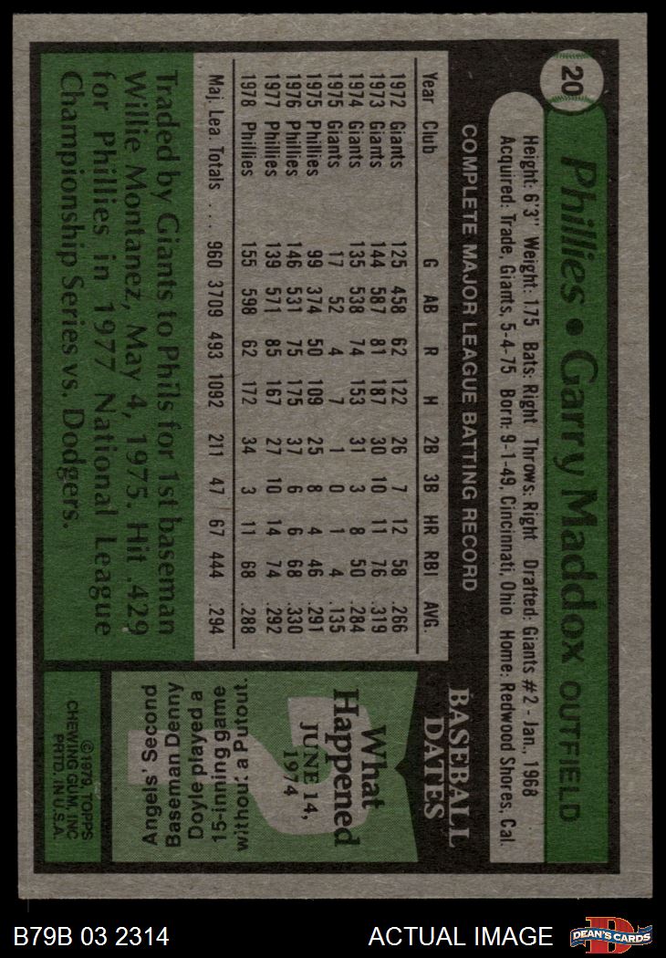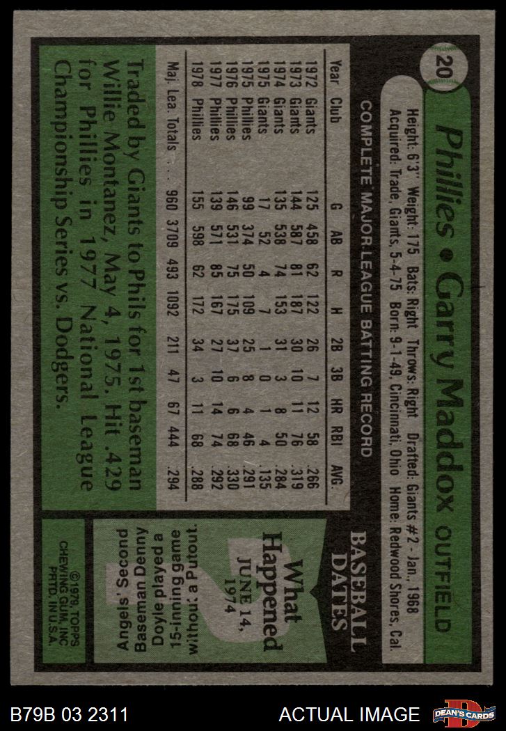 1979 Burger King Phillies #20 Garry Maddox 7 - NM