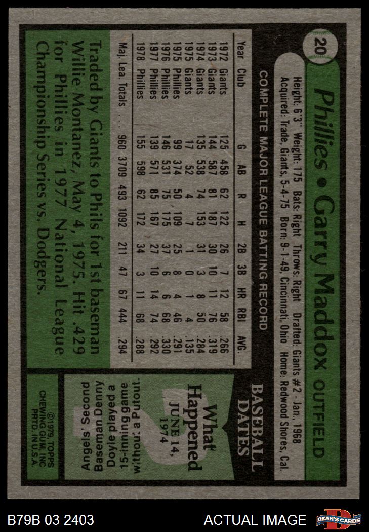 1979 Burger King Phillies #20 Garry Maddox 8 - NM/MT