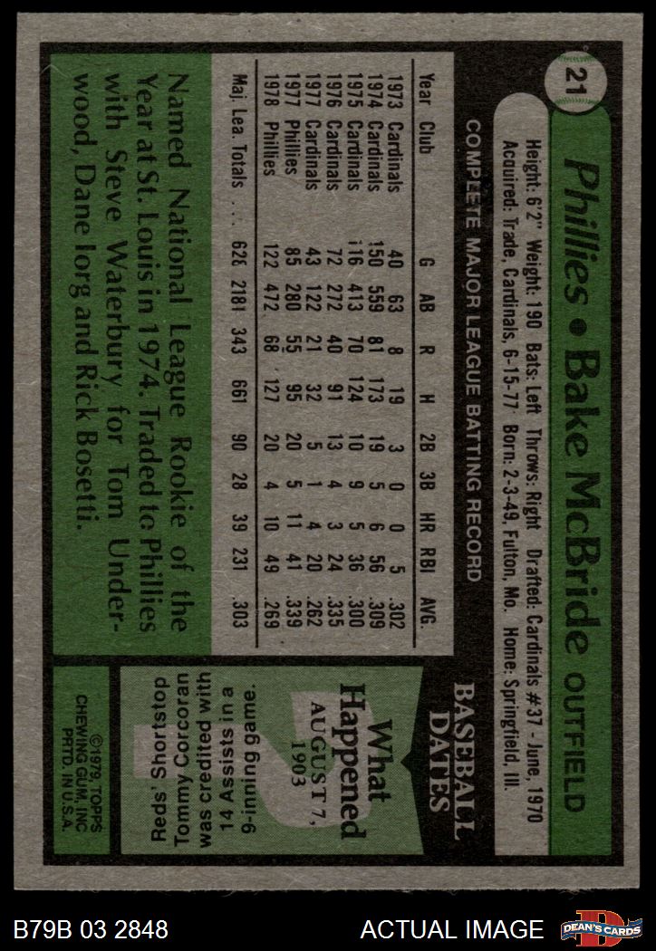 1979 Burger King Phillies #21 Bake McBride 4 - VG/EX