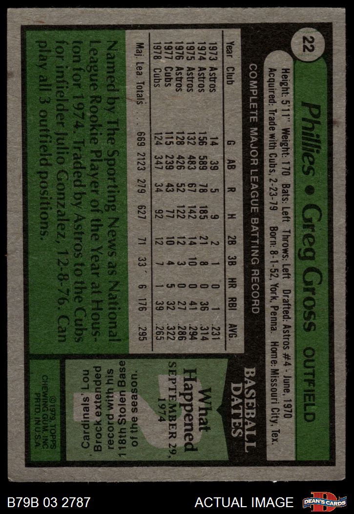 1979 Burger King Phillies #22 Greg Gross 2 - GOOD