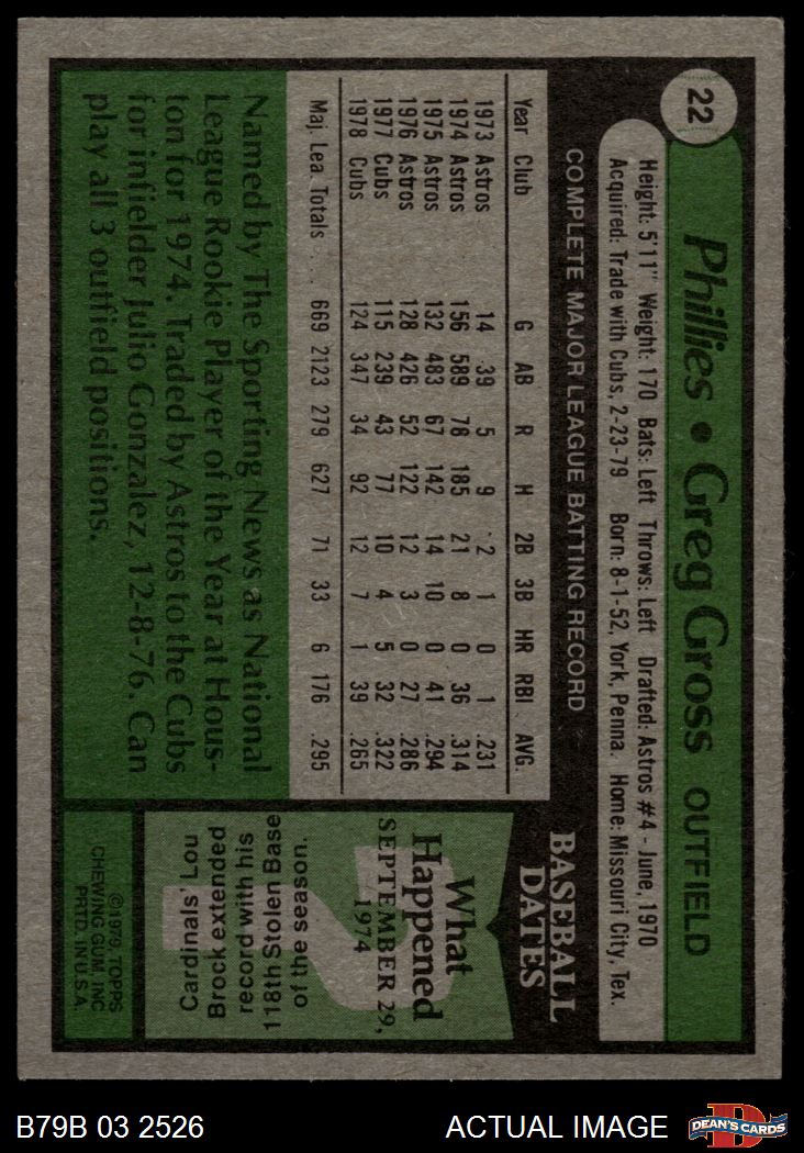 1979 Burger King Phillies #22 Greg Gross 8 - NM/MT