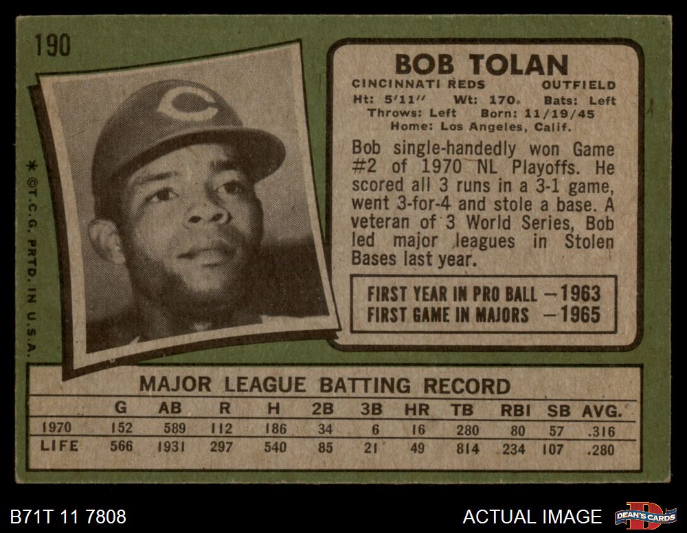 1971 Topps #190 Bobby Tolan 4.5 - VG/EX+