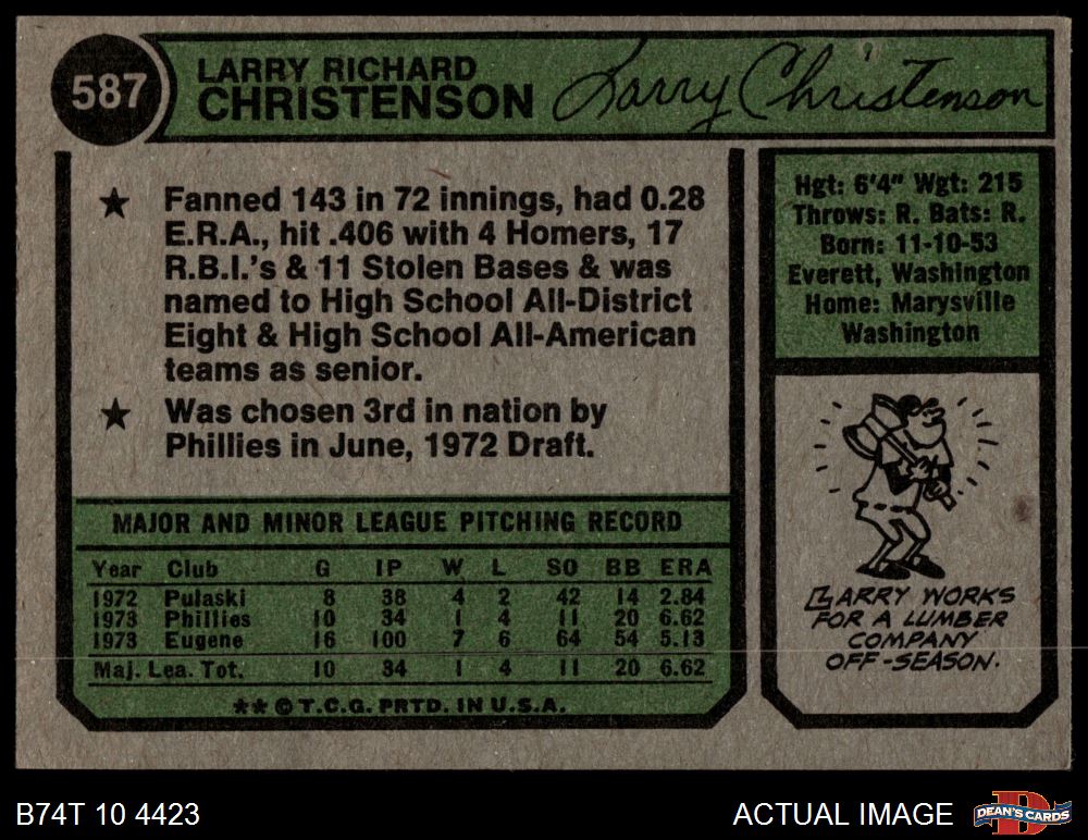 1974 Topps #587 Larry Christenson 4 - VG/EX