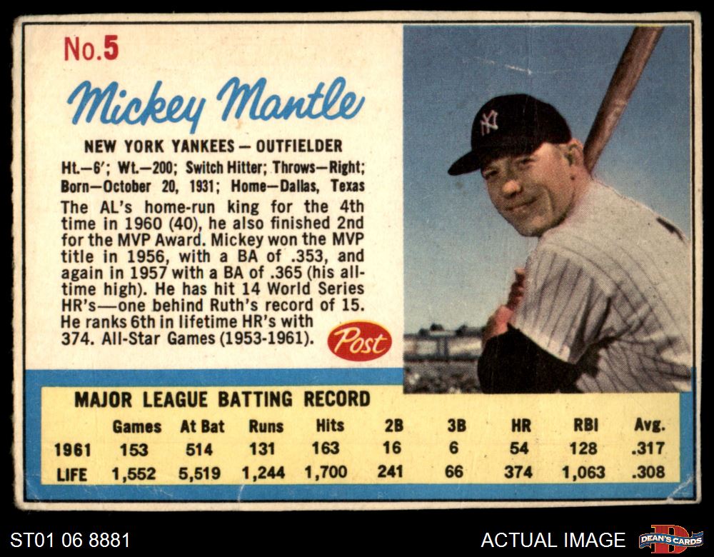 1962 Post Cereal #5 AD Mickey Mantle 1.5 - FAIR