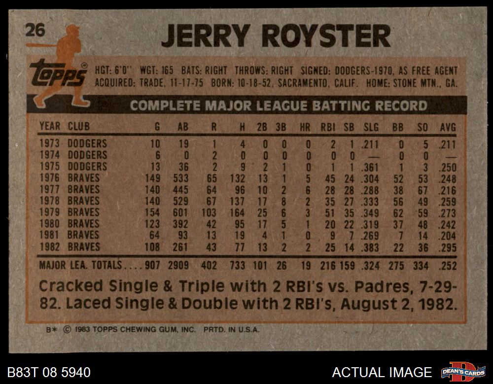 1983 Topps #26 Jerry Royster
