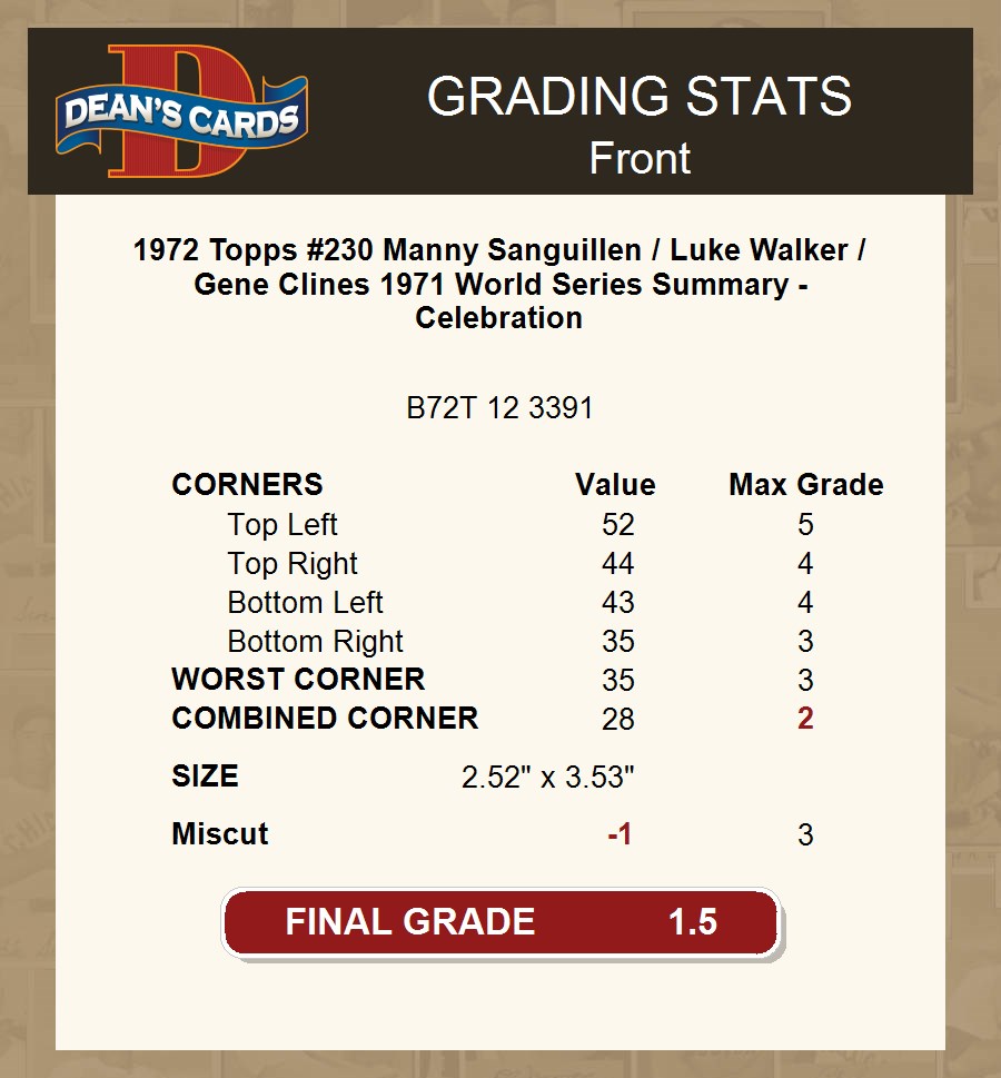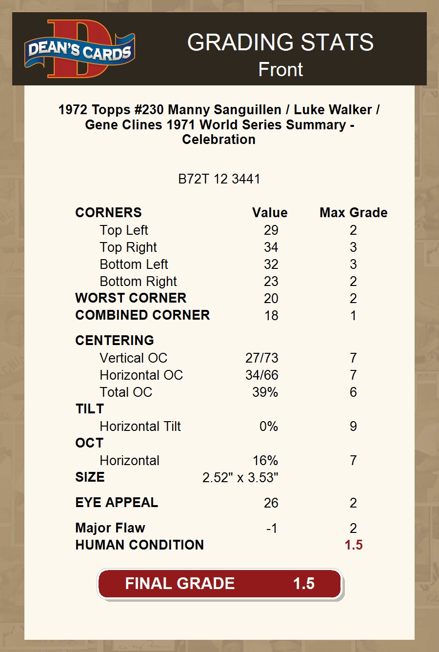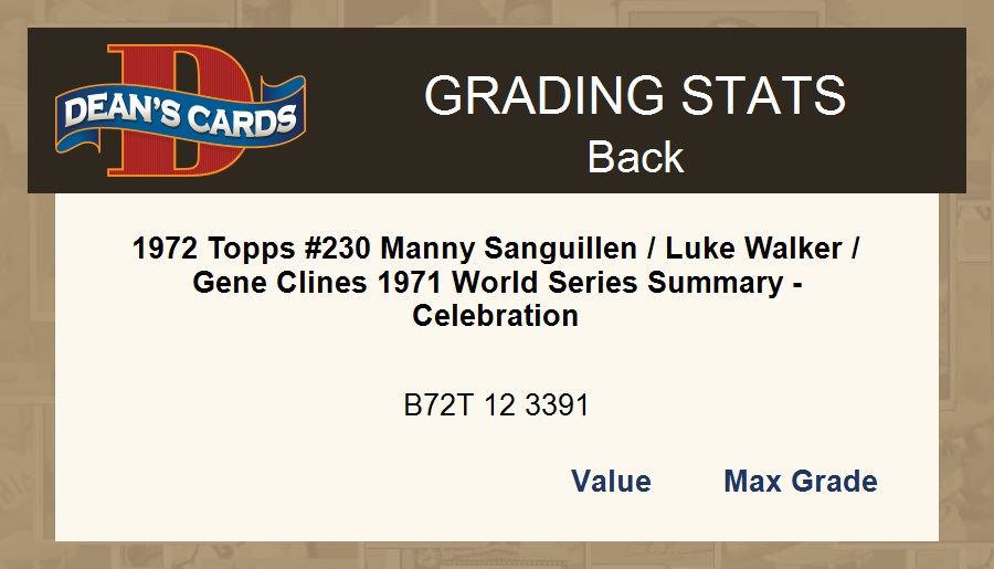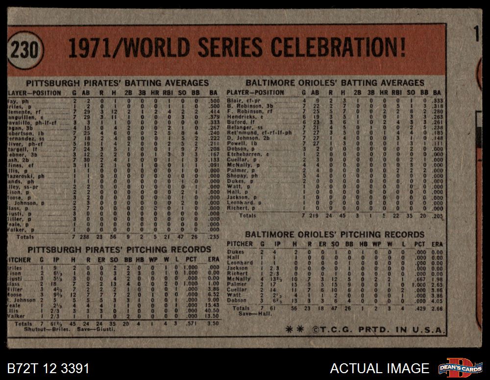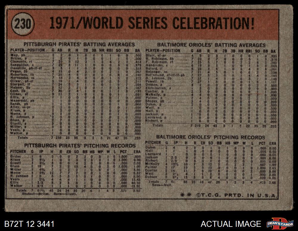 1972 Topps #230 Manny Sanguillen / Luke Walker / Gene Clines 1971 World Series Summary - Celebration 1.5 - FAIR
