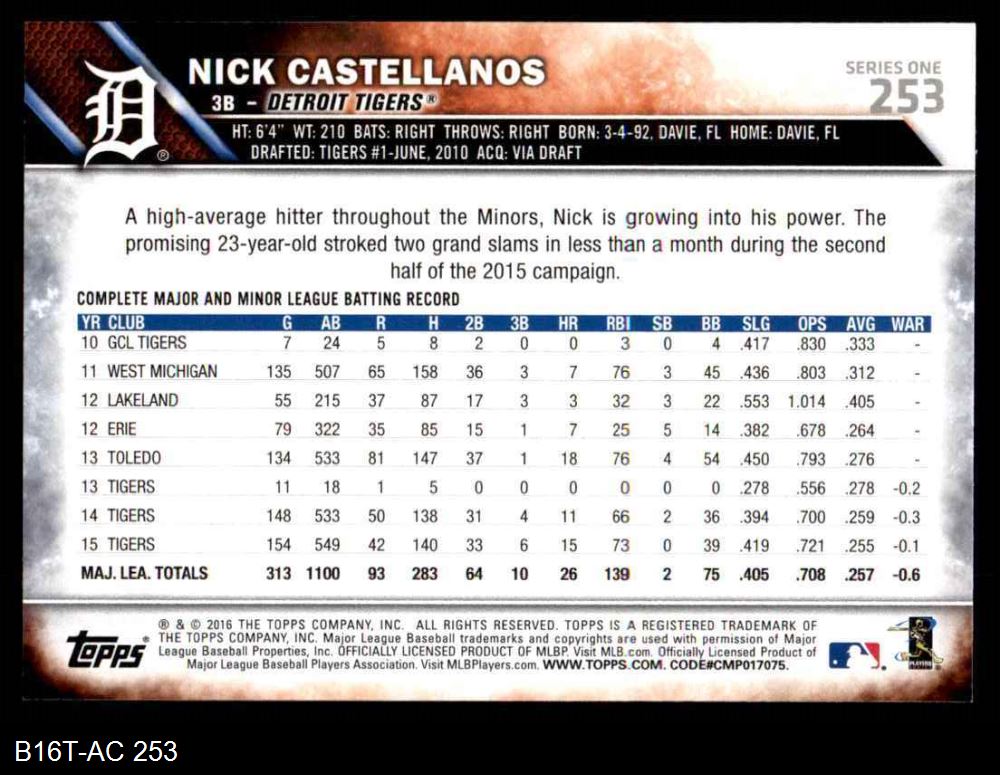 2016 Topps #253 Nick Castellanos 8 - NM/MT