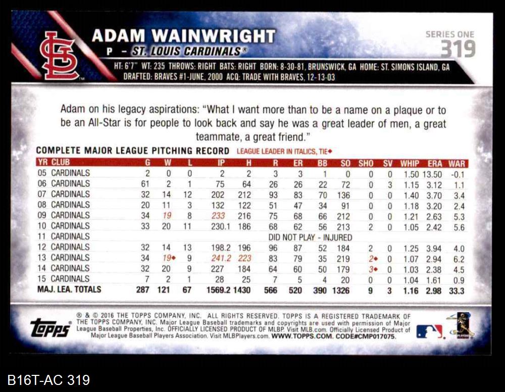 2016 Topps #319 Adam Wainwright