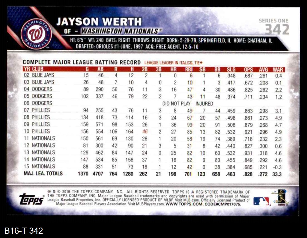 2016 Topps #342 Jayson Werth