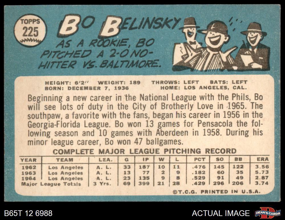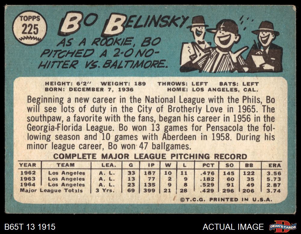 1965 Topps #225 Bo Belinsky