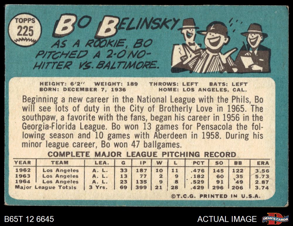 1965 Topps #225 Bo Belinsky 3 - VG