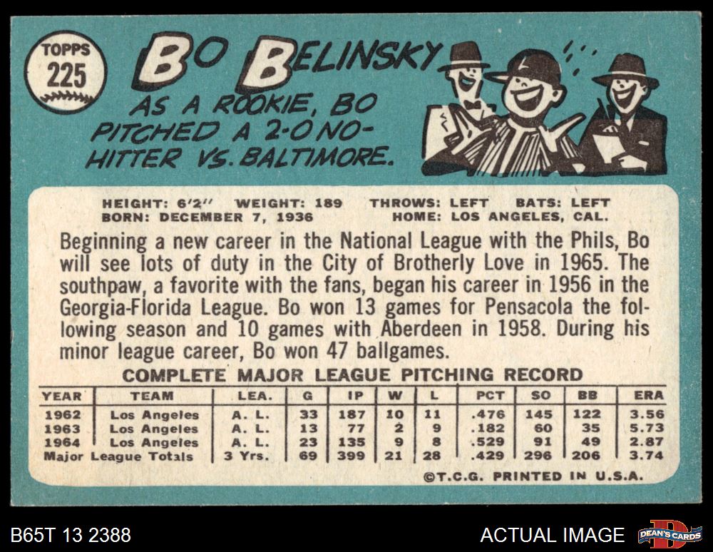 1965 Topps #225 Bo Belinsky 6.5 - EX/MT+