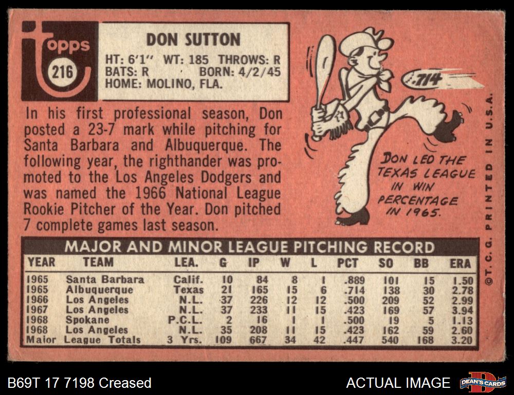 1969 Topps #216 Don Sutton 2 - GOOD