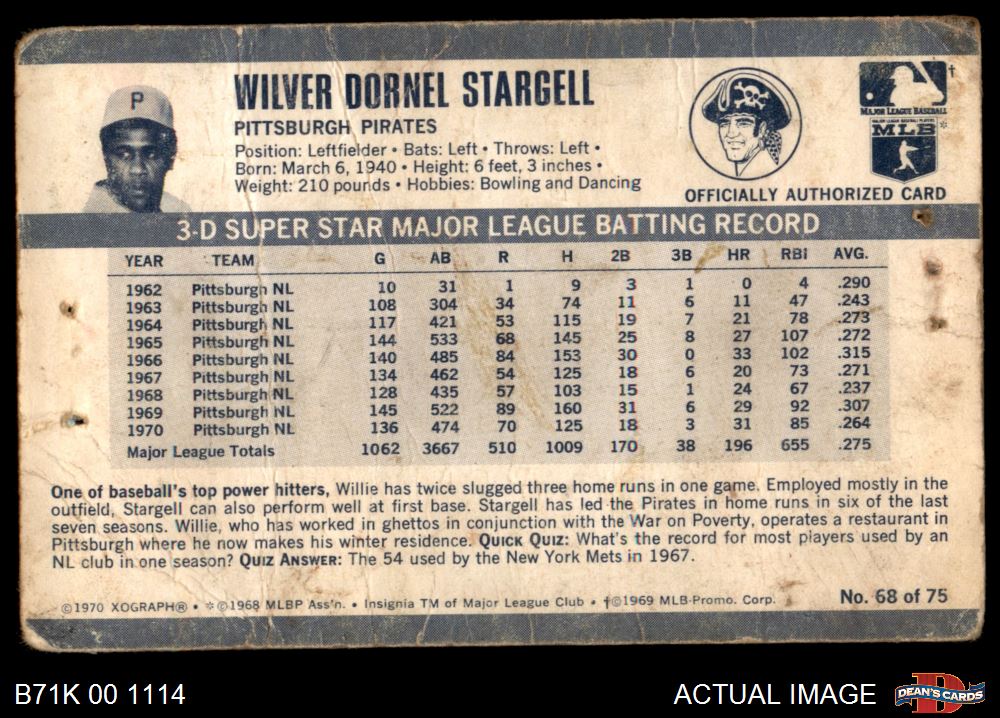 1971 Kellogg's #68 Willie Stargell AUTHENTIC