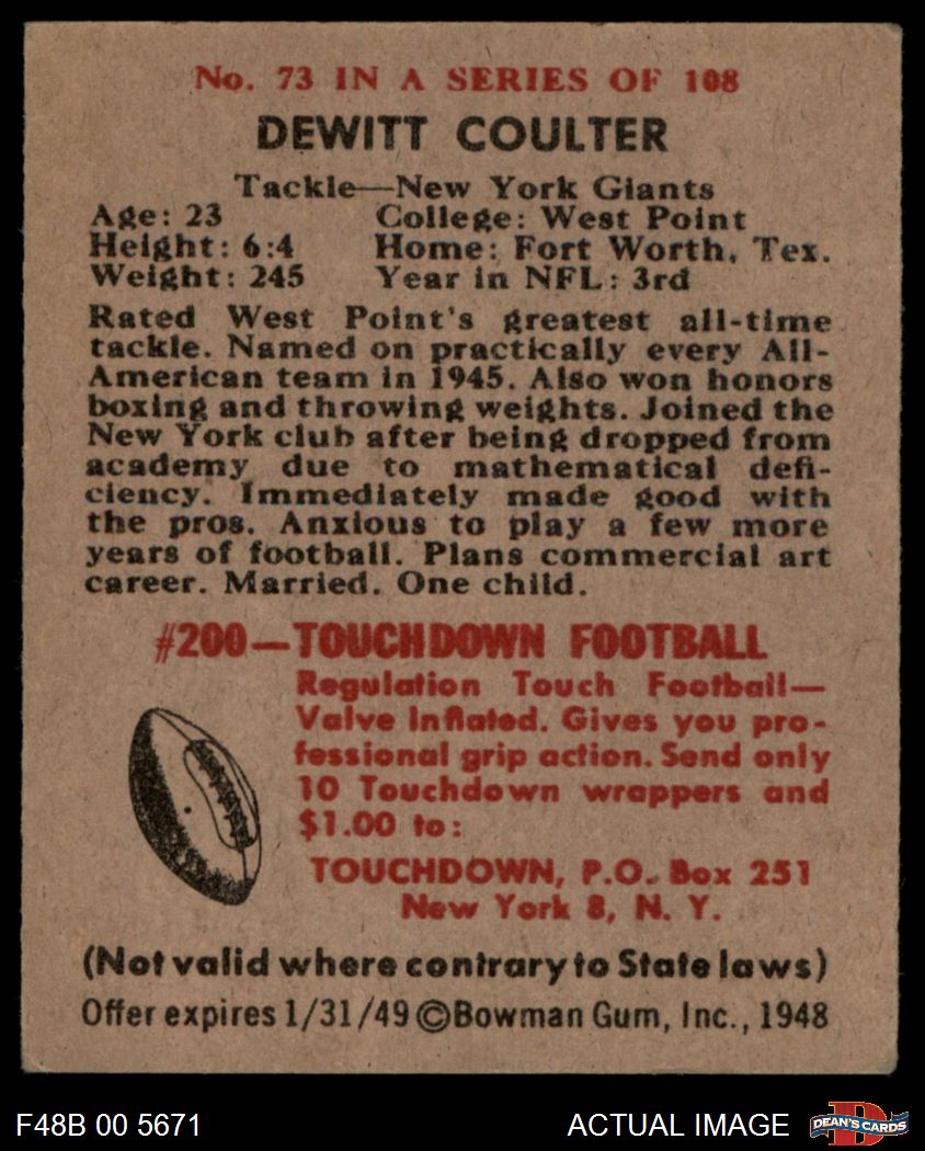 1948 Bowman #73 DeWitt Coulter