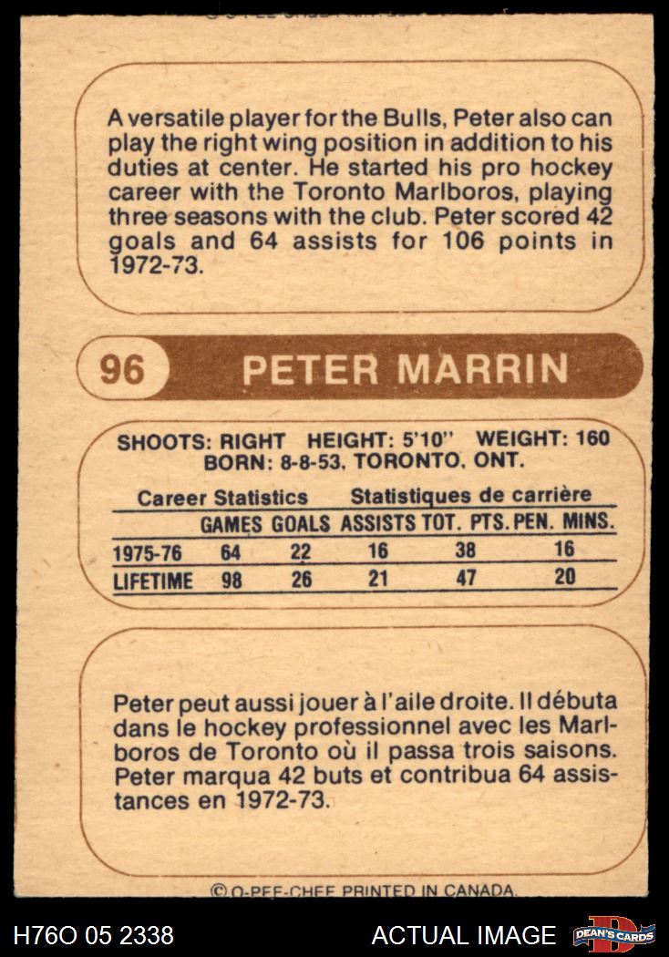 1976 O-Pee-Chee WHA #96 Peter Marrin 2 - GOOD