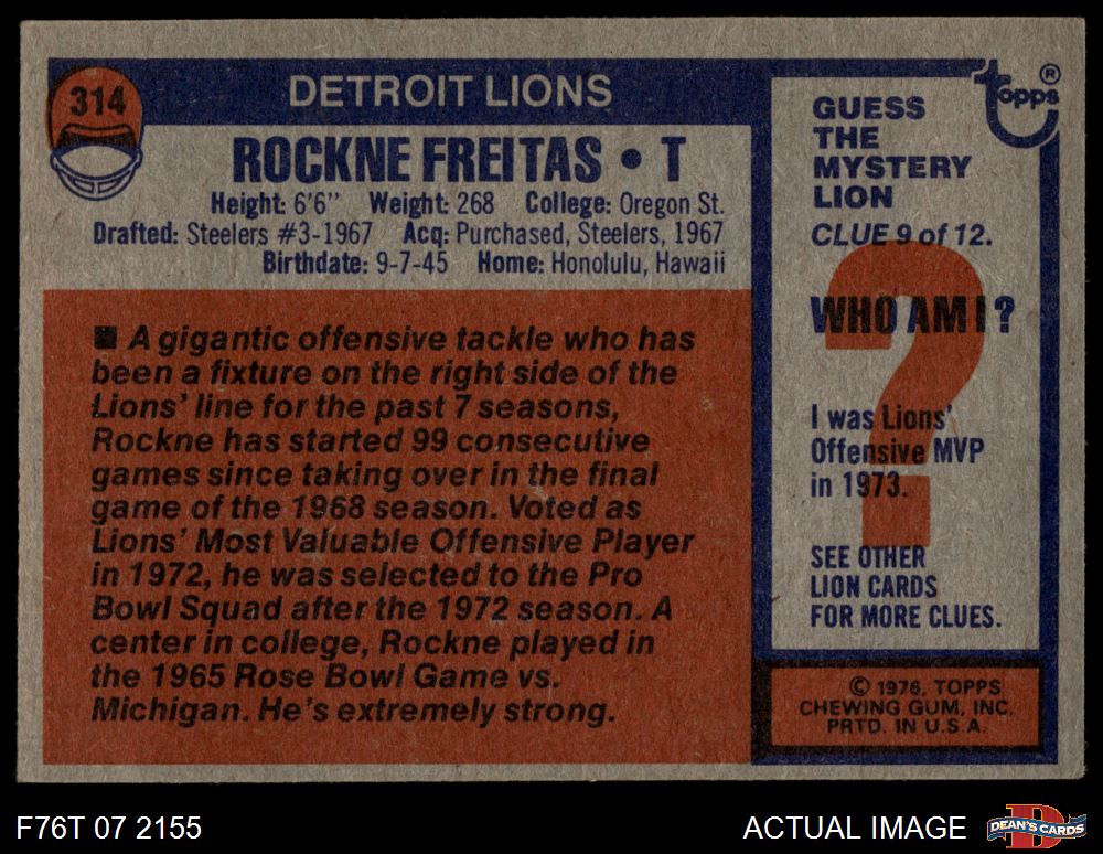 1976 Topps Football Cards (7,762 available)1976 Topps Lions (365 available)