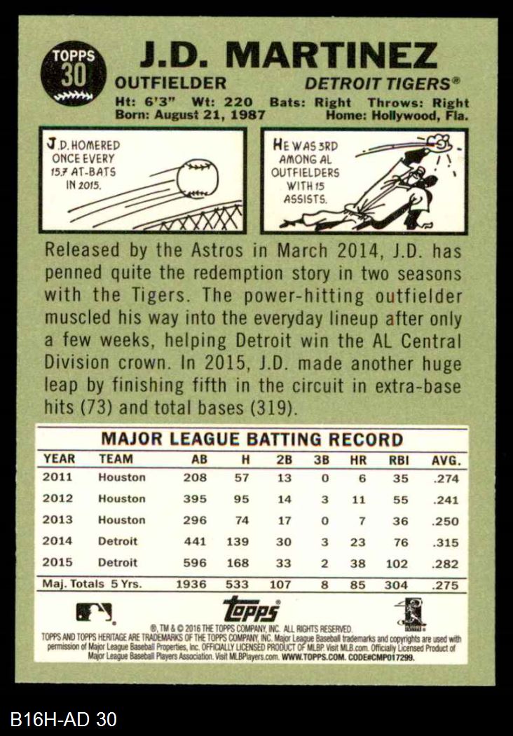 2016 Topps Heritage #30 J.D. Martinez 8 - NM/MT