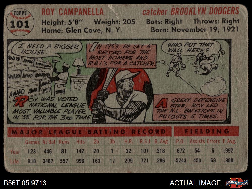 1956 Topps #101 GRY Roy Campanella AUTHENTIC
