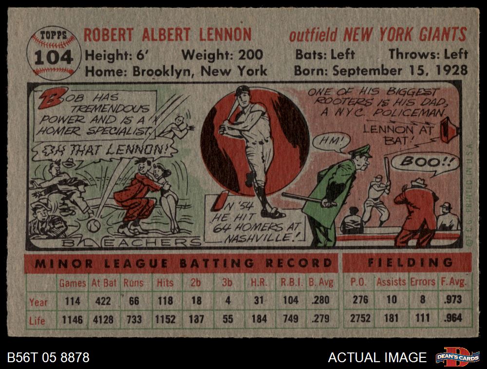 1956 Topps #104 GRY Bob Lennon 3 - VG