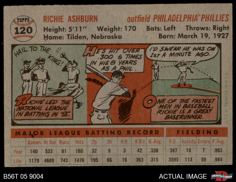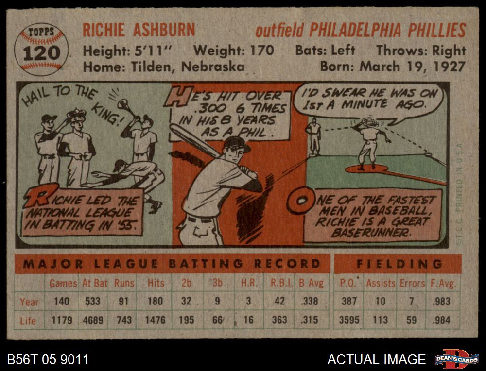 1956 Topps #120 GRY Richie Ashburn 3 - VG